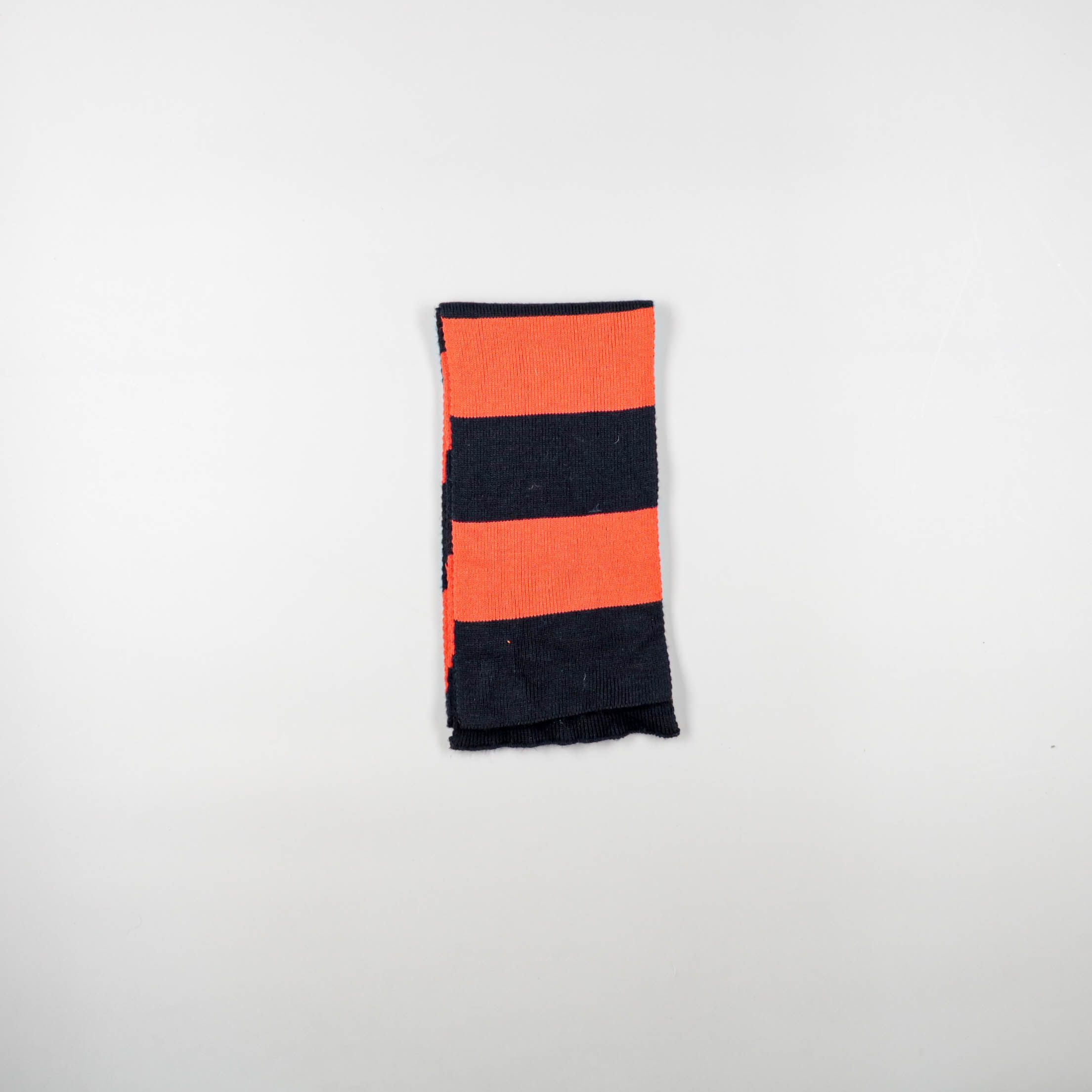 Вязаный шарф Howick в широкую полоску чёрного и оранжевого цветов. Подойдёт для зимних и демисезонных прогулок и повседневных образов, хорошо сочетается с тёмной верхней одеждой. Мягкий трикотаж приятно прилегает к шее и легко завязывается.