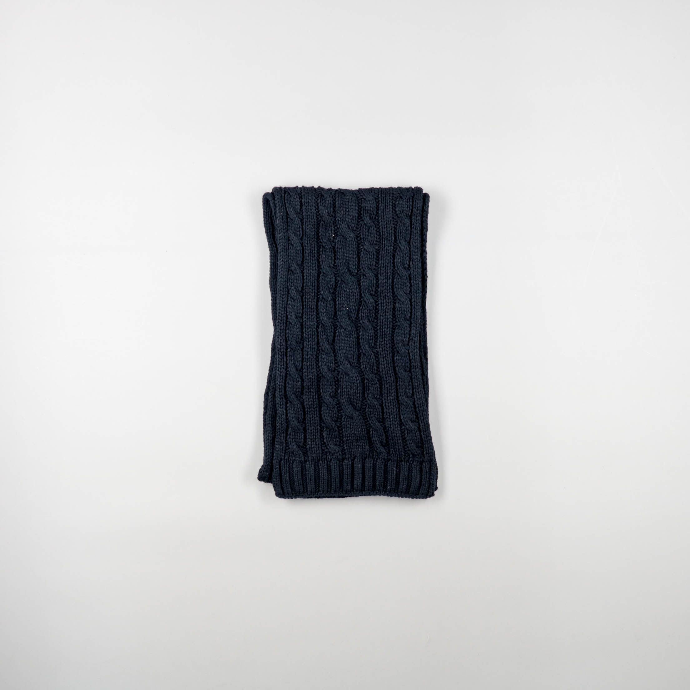 Вязаный шарф с узором «косы» в тёмно-синем цвете, подойдёт для повседневных образов в холодную погоду. Удобно носить с пальто или пуховиком, хорошо закрывает шею и сохраняет тепло.