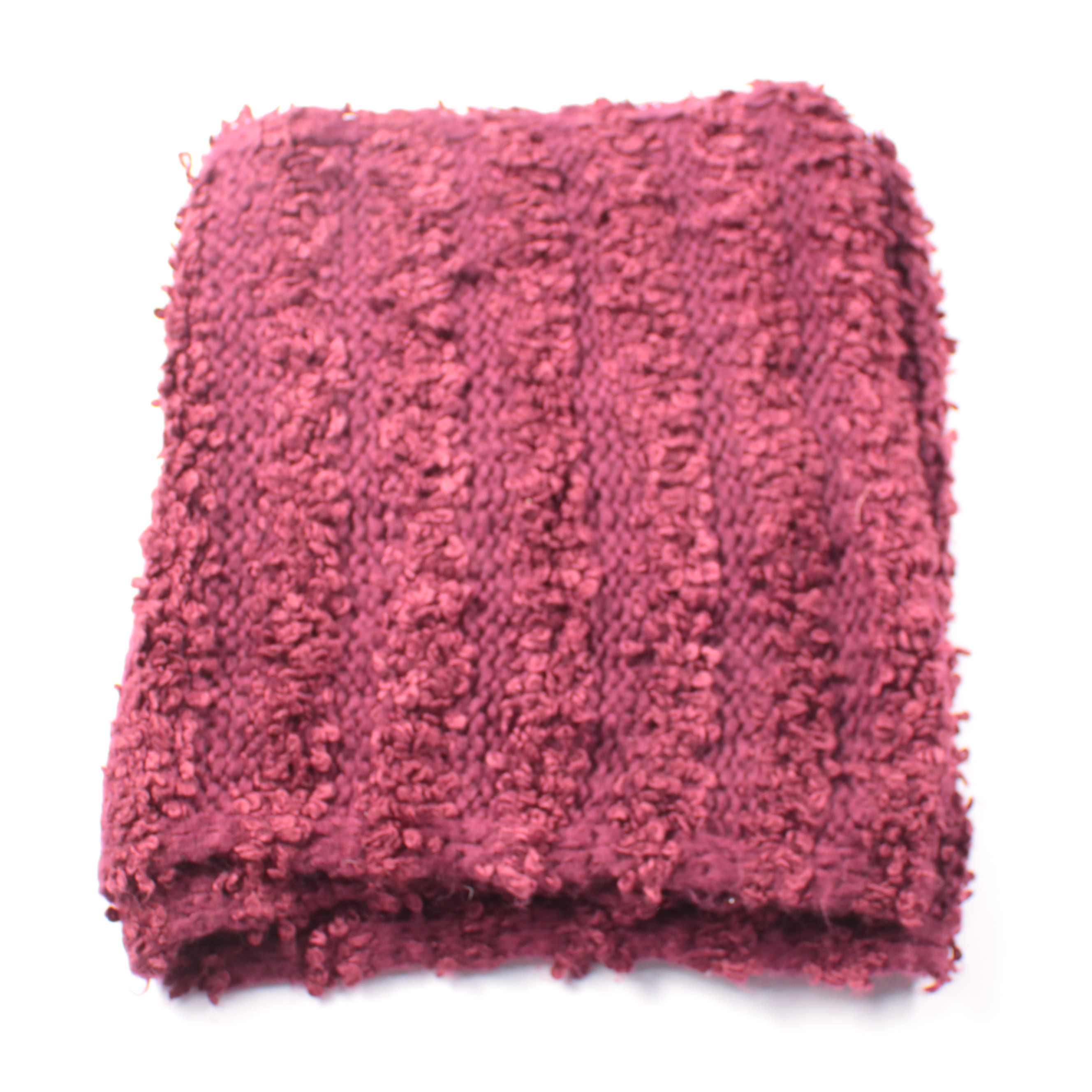 Вязаный снуд бордового цвета с выраженной фактурой, удобно носить с пальто, курткой или паркой в прохладную погоду. Хорошо закрывает шею и не сползает благодаря форме кольца.