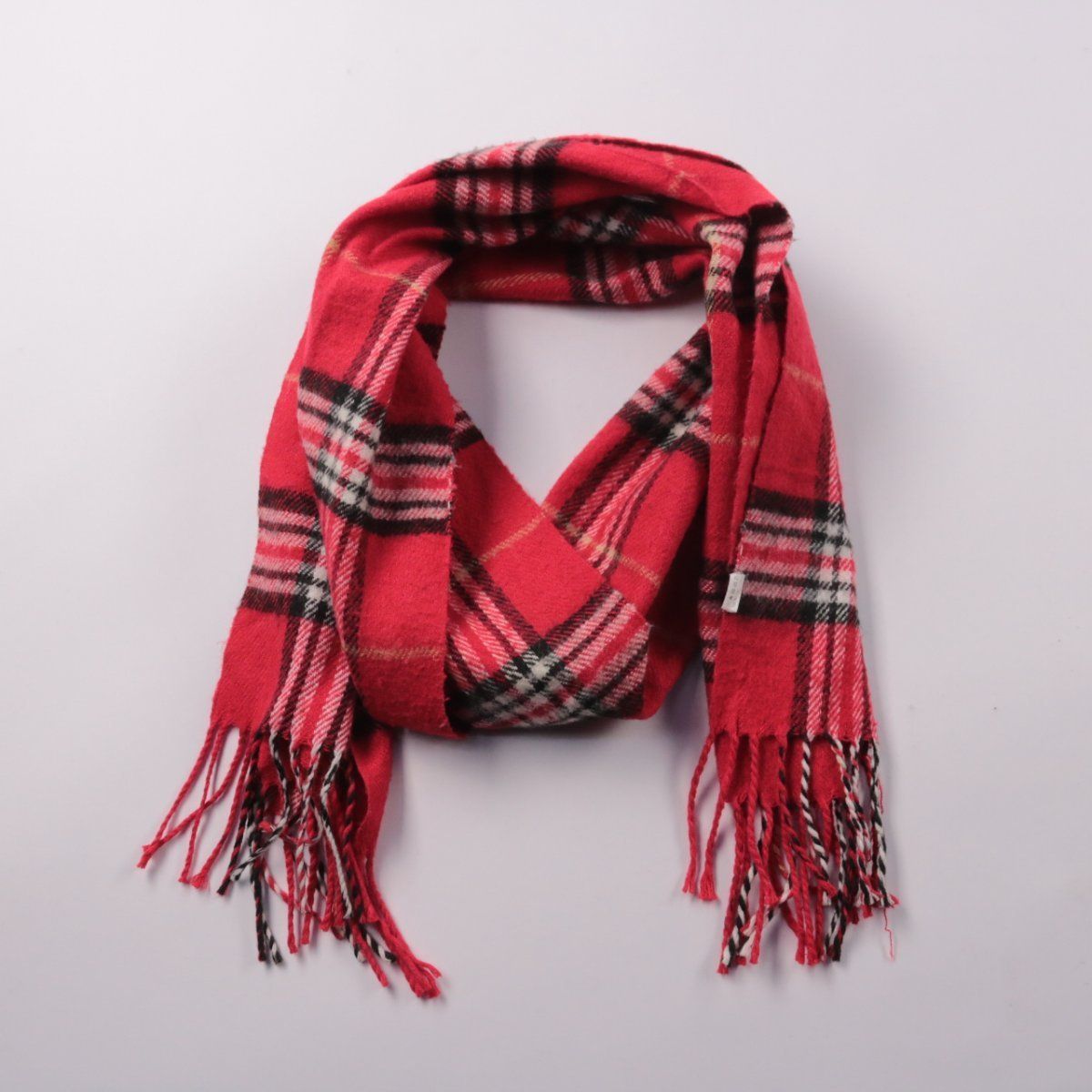Шарф Ozis в красную клетку с кисточками на концах, мягкий и тёплый. Подойдёт для холодной погоды и повседневных образов с пальто или курткой. Практичное преимущество — хорошо защищает шею от ветра и легко комбинируется благодаря классическому принту.
