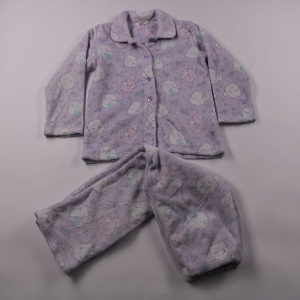 Детская пижама из мягкого флиса с рисунком в пастельных тонах: кофта на пуговицах и штаны. Подойдёт для сна и домашнего отдыха в прохладные дни. Тёплый материал приятен к телу и быстро сохнет после стирки.