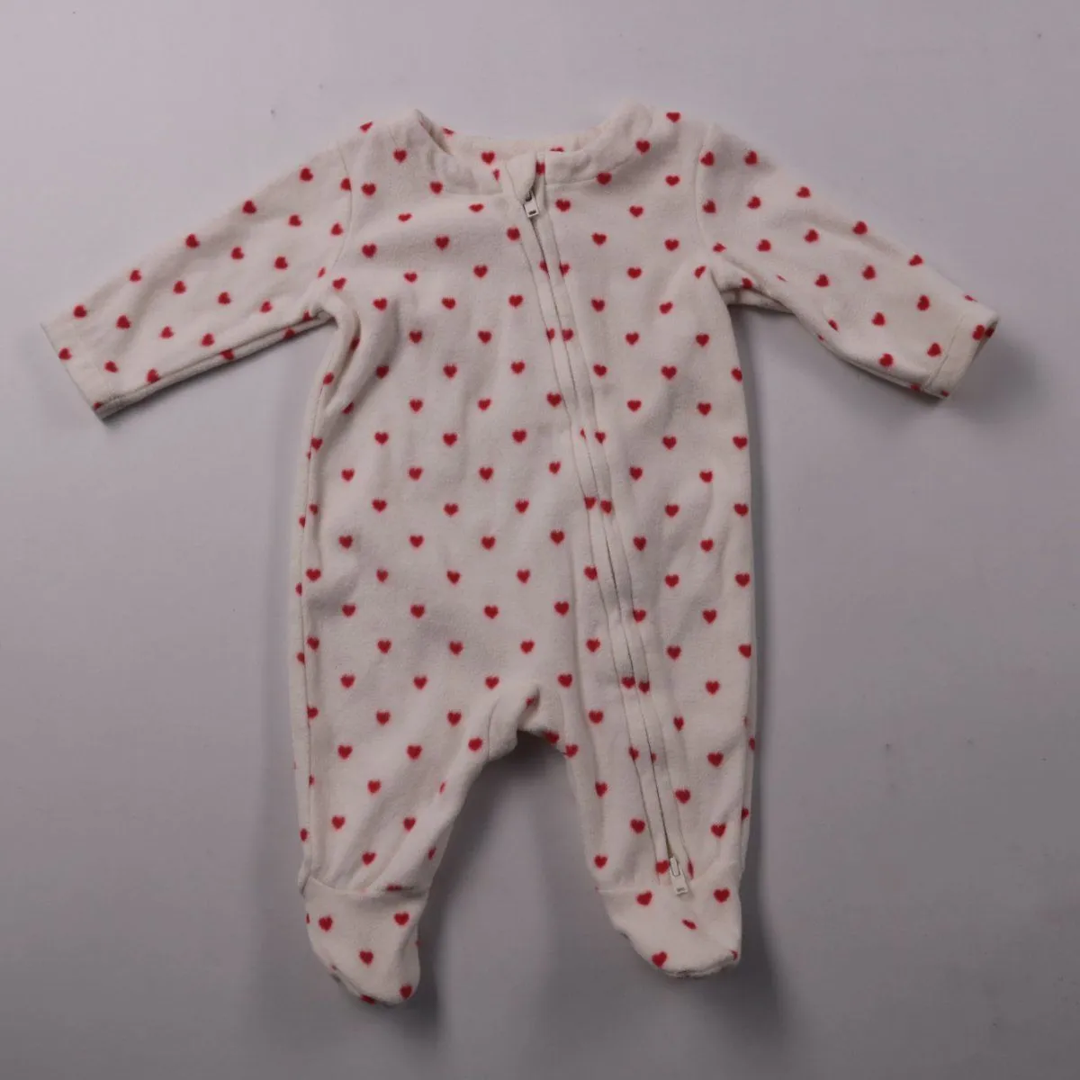 Нательный комбинезон George белого цвета с принтом красных сердечек, на молнии и с закрытыми ножками. Подойдёт для сна и домашнего использования в прохладное время. Молния по всей длине помогает быстро переодеть ребёнка.