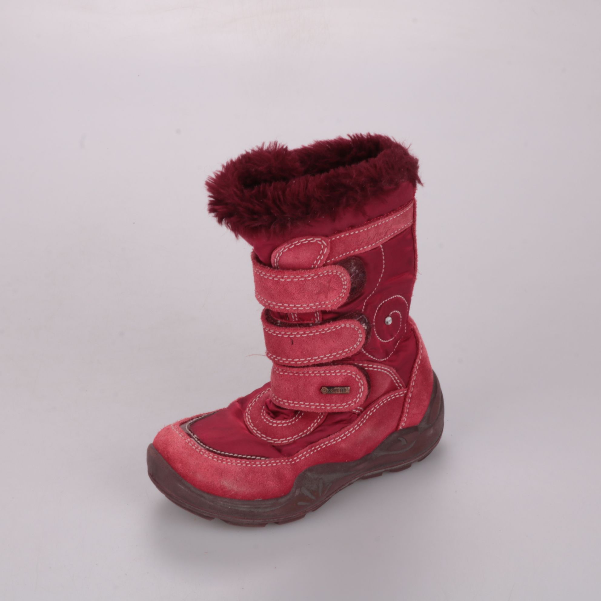Зимние сапоги Primigi бордового цвета с тёплой меховой опушкой и застёжками на липучках. Подойдут для прогулок в холодную погоду, легко надевать и регулировать по ножке. Практичная подошва с протектором помогает меньше скользить на улице.