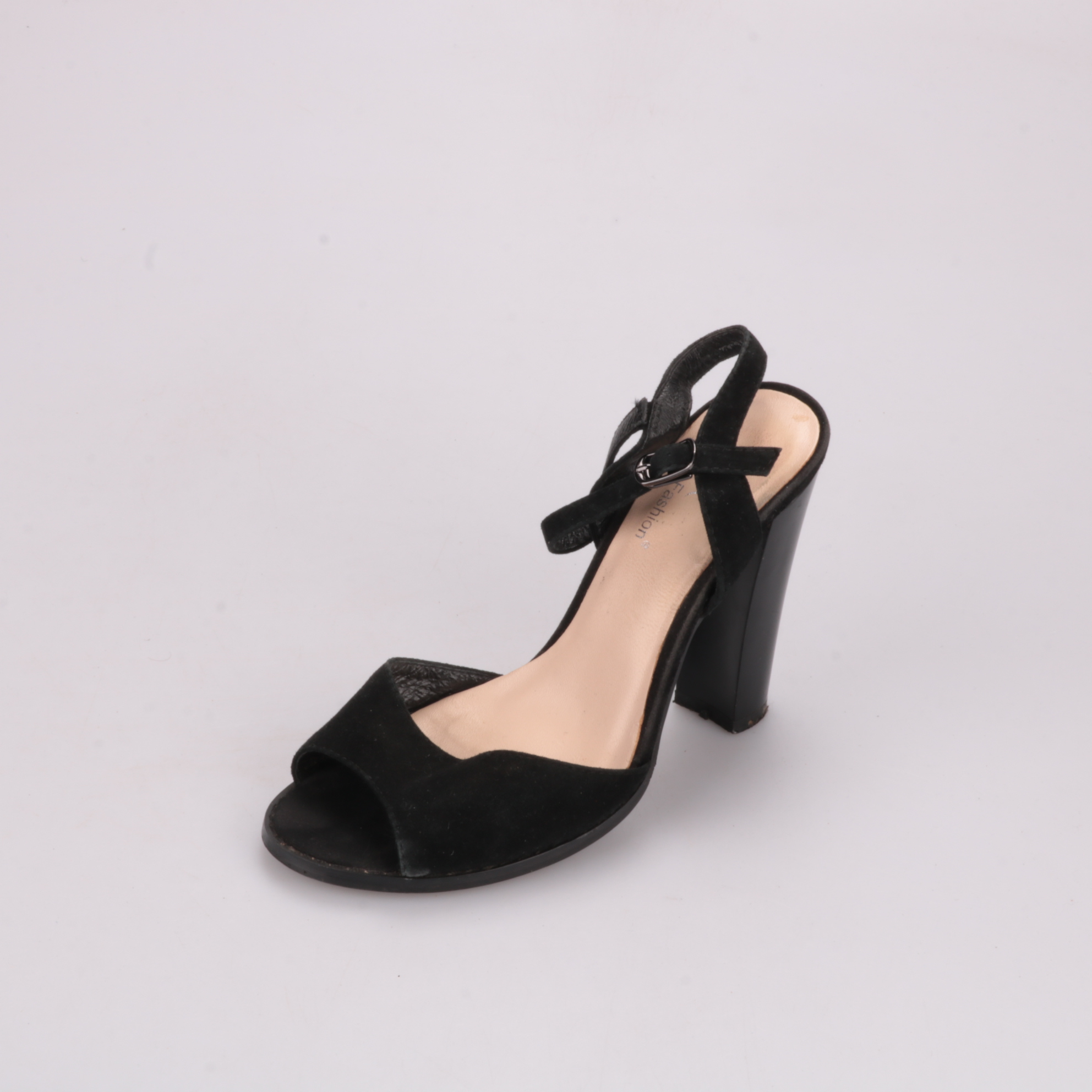 Босоножки Popular Fashion из чёрного материала с открытым носком и ремешком на щиколотке, на устойчивом высоком каблуке. Подойдут для вечера, праздника или выхода в город, хорошо смотрятся с платьями и брюками. Удобная фиксация ремешком помогает надёжн...