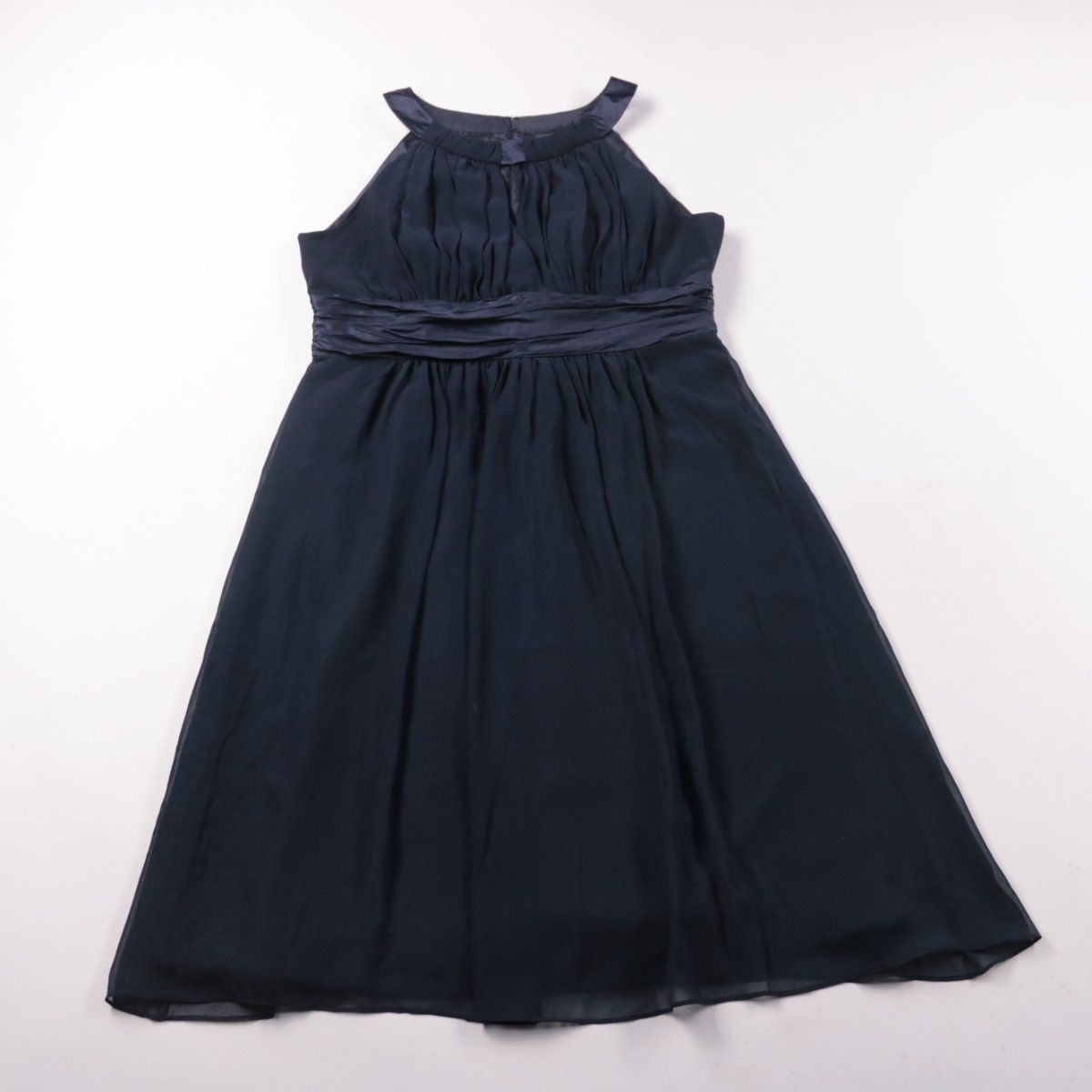 Темно-синее платье Jake*s из лёгкой струящейся ткани с драпировкой на лифе и поясом на талии. Подойдёт для праздника, утренника или семейной фотосессии. Материал почти не мнётся и комфортно сидит за счёт свободной юбки.