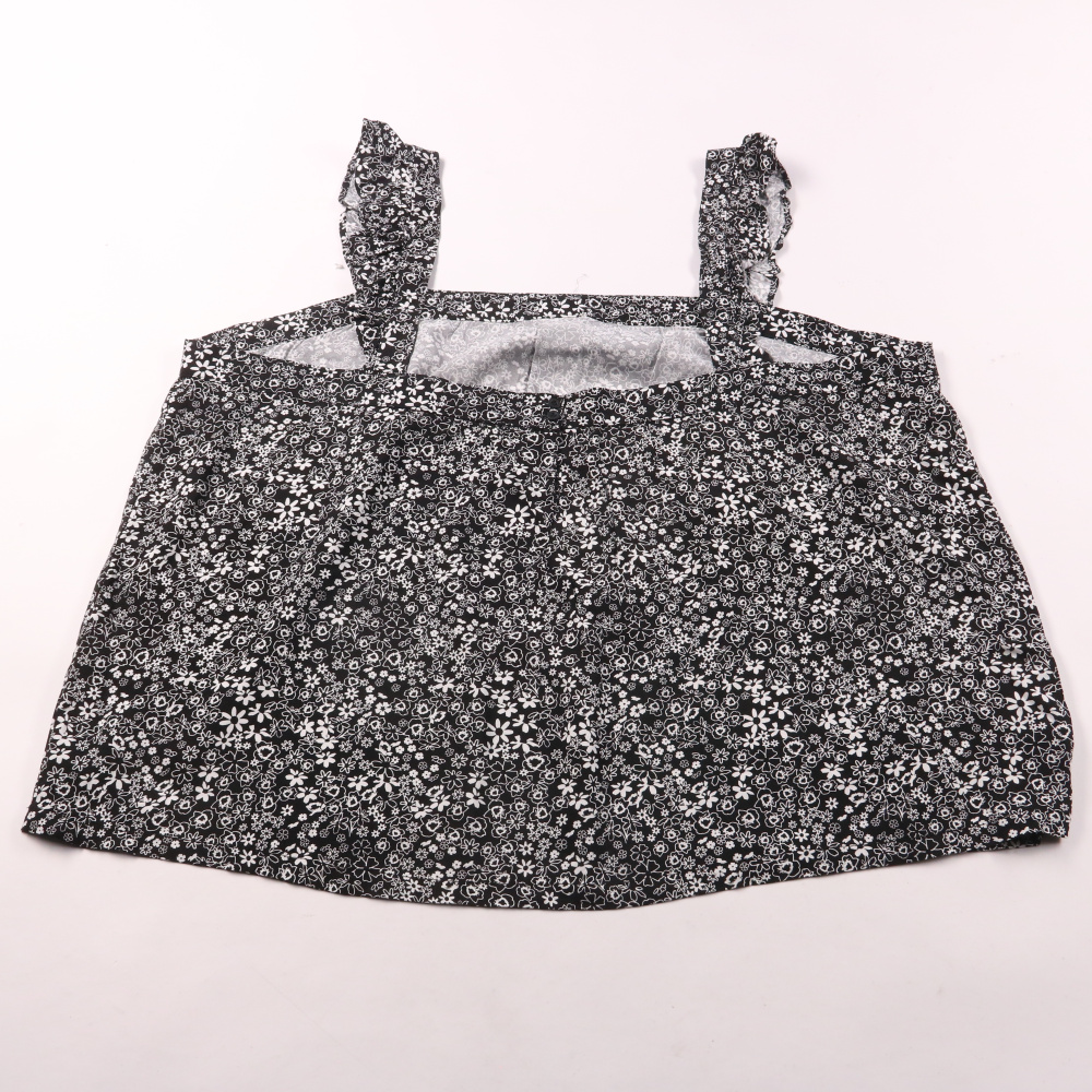 Юбка Ed-it-ed из 100% вискозы, чёрная с мелким белым цветочным принтом и бретелями. Подойдёт для летних прогулок и повседневной носки, ткань лёгкая и дышащая. Удобно надевается и не сковывает движения.