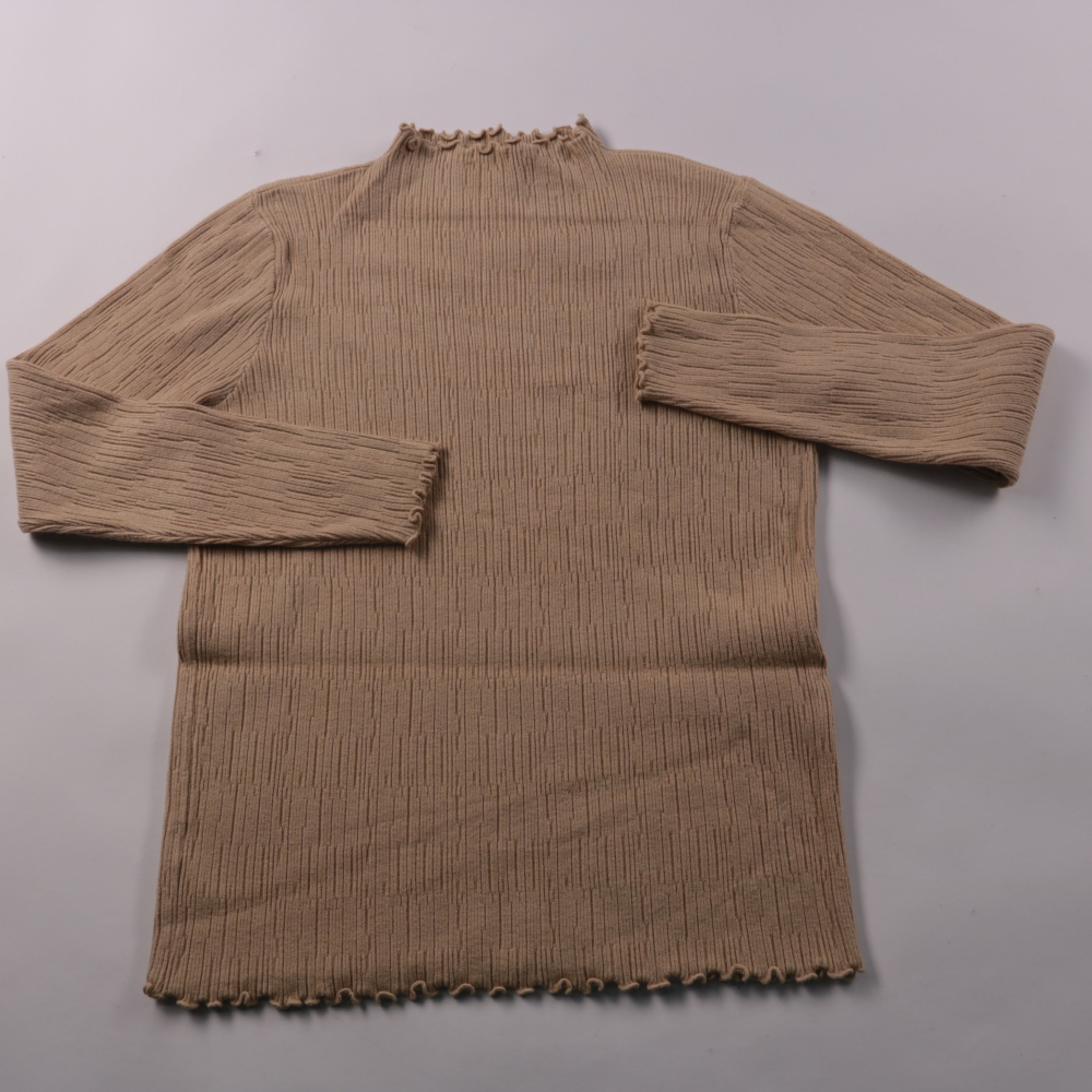 Детская водолазка в рубчик бежевого цвета, без указания бренда. Подойдёт для школы/садика и на каждый день, хорошо сочетается с юбками и брюками. Трикотаж тянется и удобно сидит под курткой или жилетом.