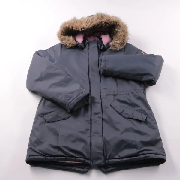 Зимняя куртка для девочки с капюшоном и меховой опушкой, внутри мягкая подкладка. Подойдёт для прогулок и школы в холодную погоду. Есть удобные карманы с клапанами и застёжка на молнию с планкой, которая защищает от ветра.