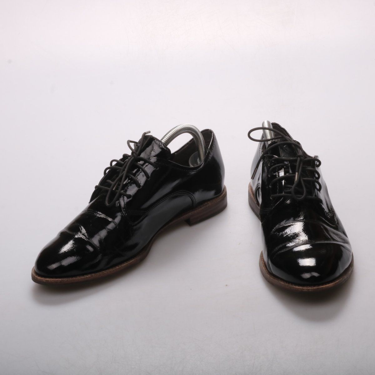 Лаковые туфли Tamaris на шнуровке в классическом силуэте оксфордов. Подойдут для офиса и формальных образов, хорошо смотрятся с костюмом и брюками. Практичная подошва с невысоким каблуком даёт устойчивость при ходьбе.