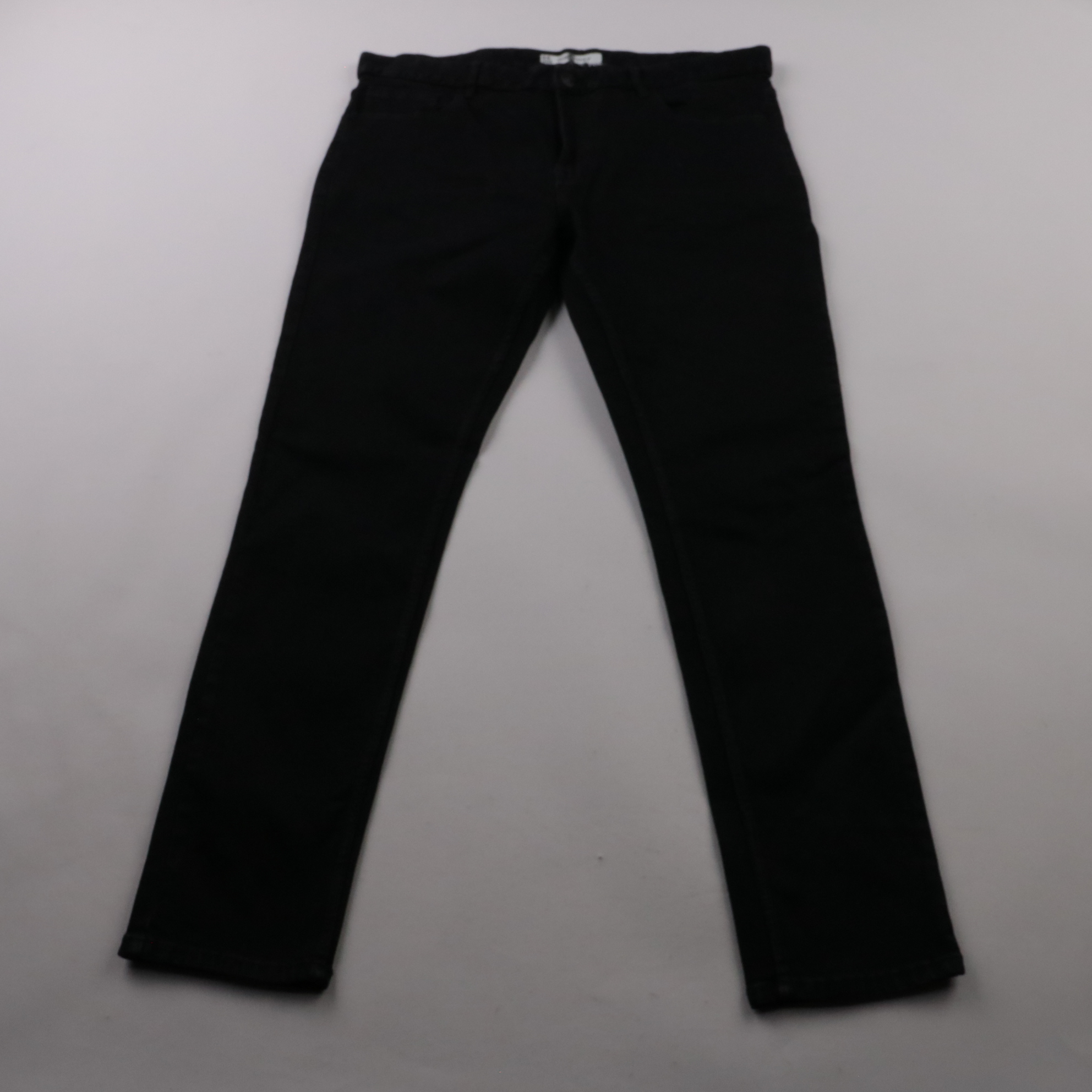 Мужские брюки OVS модели Skinny в чёрном цвете, зауженный крой. Подойдут для повседневных образов и офиса в стиле casual, легко сочетаются с рубашками и свитшотами. Практичны тем, что тёмная ткань немаркая и простая в уходе.