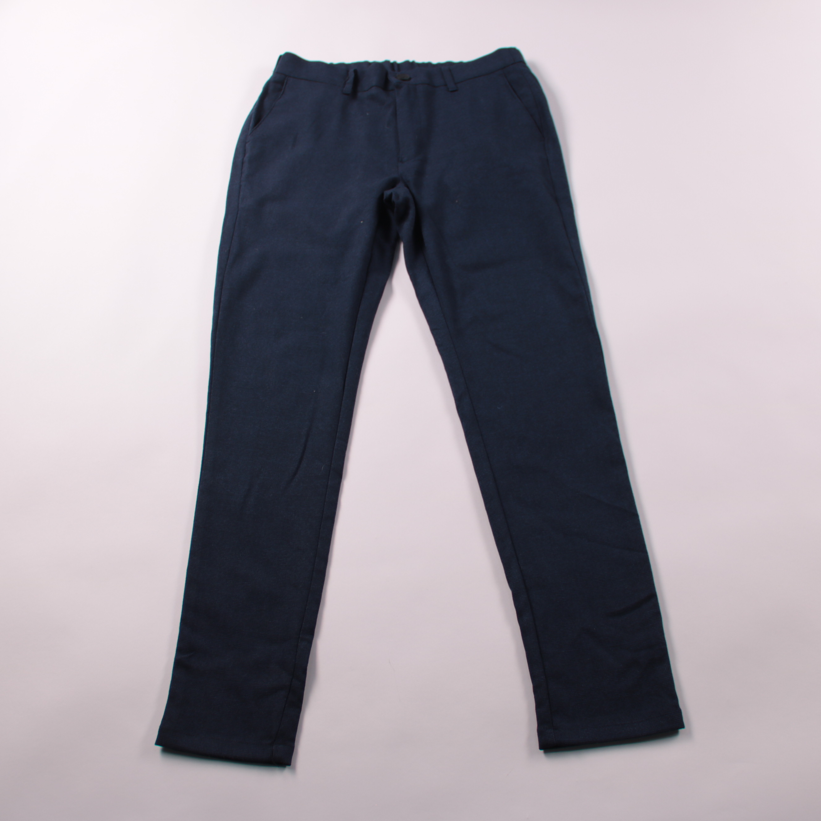 Брюки Daily Aesthetikz в тёмно-синем цвете, зауженного кроя (skinny) с классической посадкой и шлёвками под ремень. Подойдут для повседневных и более собранных образов — с рубашкой, поло или худи. Смесовая ткань с эластаном даёт комфортную посадку и ме...
