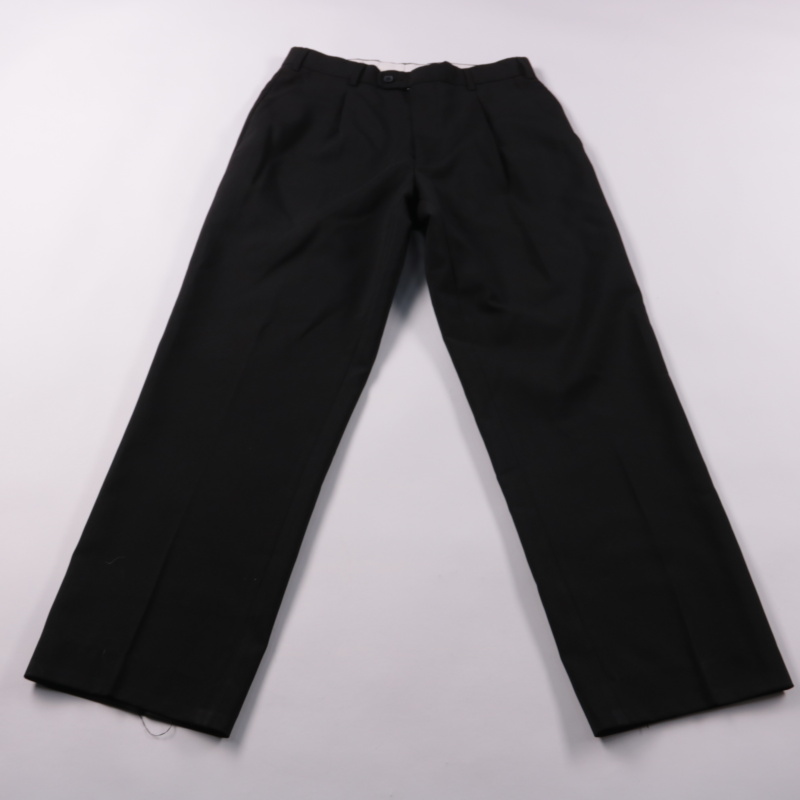 Мужские классические брюки прямого кроя из 100% полиэстера, подойдут для офиса и формальных комплектов. Универсальный чёрный цвет легко сочетается с рубашками и пиджаками. Практичный материал почти не мнётся и быстро сохнет.