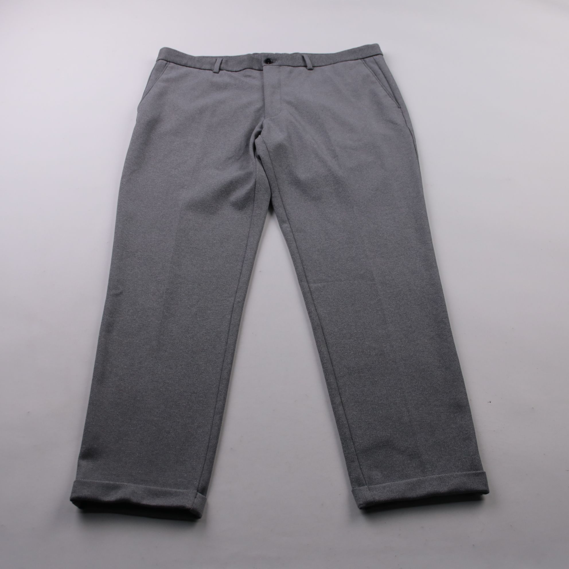 Мужские брюки Zara серого цвета из плотной ткани с лёгкой эластичностью и подворотами снизу. Подойдут для офиса и повседневных образов с рубашкой или свитером. Практичный материал почти не мнётся и комфортно тянется в движении.