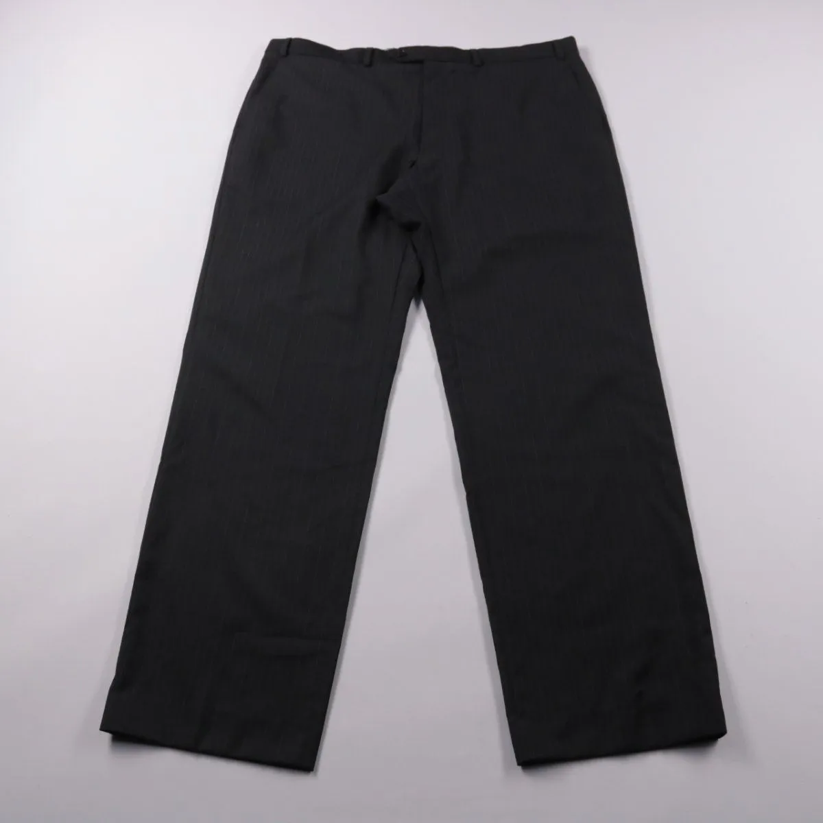 Мужские классические брюки Marks & Spencer чёрного цвета в тонкую полоску. Подойдут для офиса и деловых мероприятий, легко сочетаются с рубашками и пиджаком. Ткань с шерстью и полиэстером держит форму и выглядит аккуратно.
