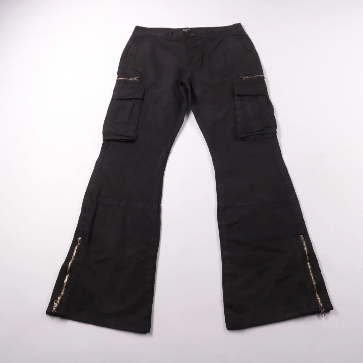 Мужские брюки-карго BoohooMAN чёрного цвета с накладными боковыми карманами и молниями внизу штанин. Подойдут для повседневных образов и уличного стиля, удобны в носке за счёт прямого кроя с лёгким клёшем. Практичное преимущество — вместительные карманы для мелочей.
