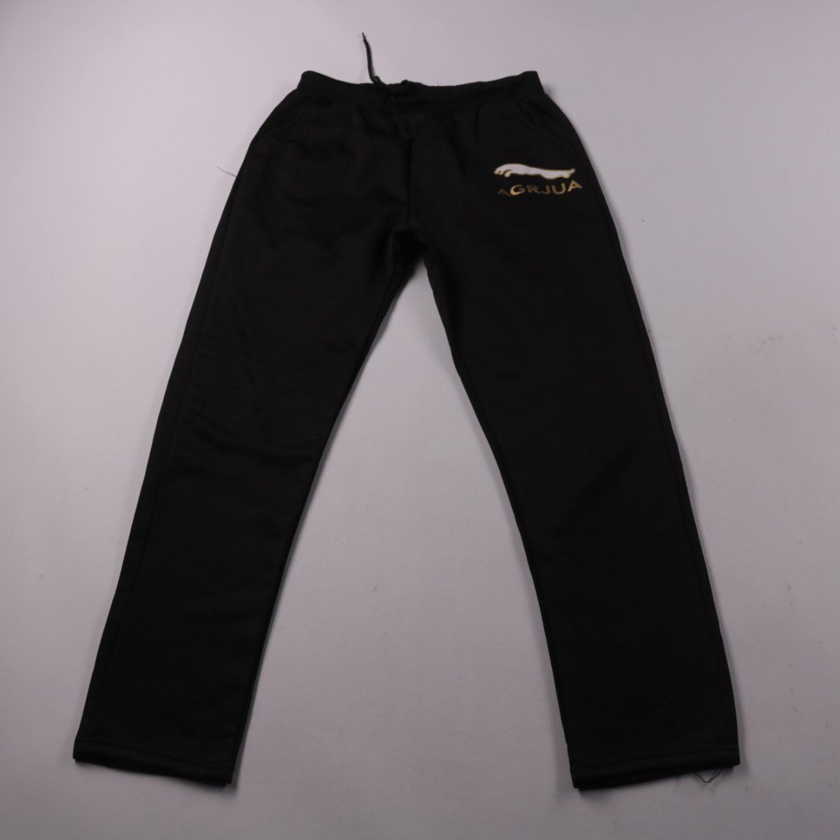 Спортивные брюки чёрного цвета с поясом на резинке и шнурком. Подойдут для тренировок, прогулок и повседневной носки в прохладную погоду. Практичный плюс — легко регулируются по талии.