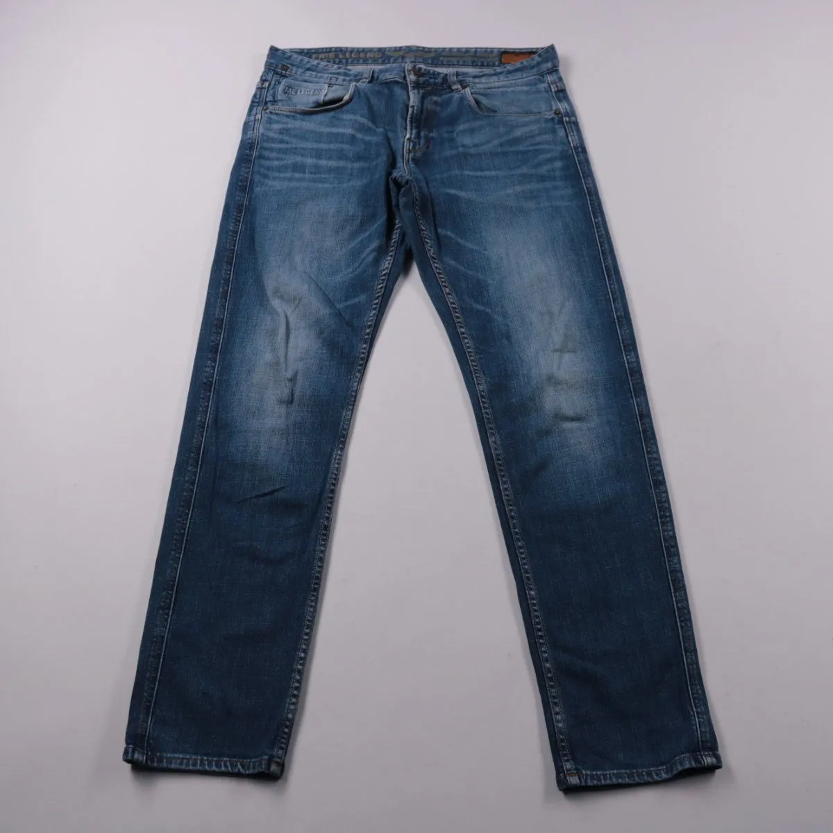 Мужские джинсы PME Legend из синего денима с лёгкими потертостями. Подойдут для повседневной носки и городских образов с футболкой, рубашкой или свитером. Эластичная добавка в составе даёт более комфортную посадку и свободу движений.