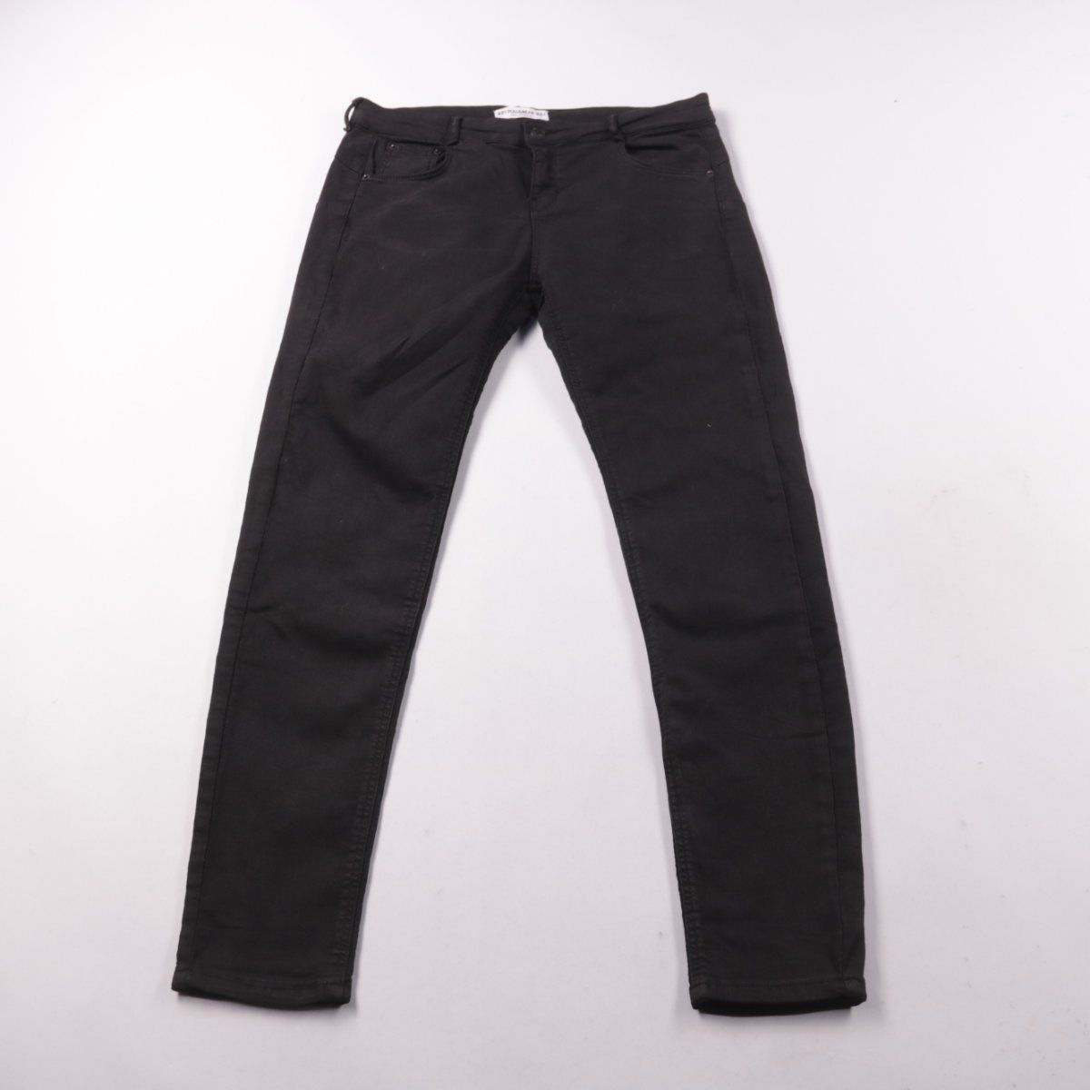 Мужские чёрные джинсы Pull&Bear узкого кроя с классической посадкой и пятью карманами. Подойдут для повседневной носки и базовых образов в любое время года. Практичны за счёт тёмного цвета — менее заметны следы носки.
