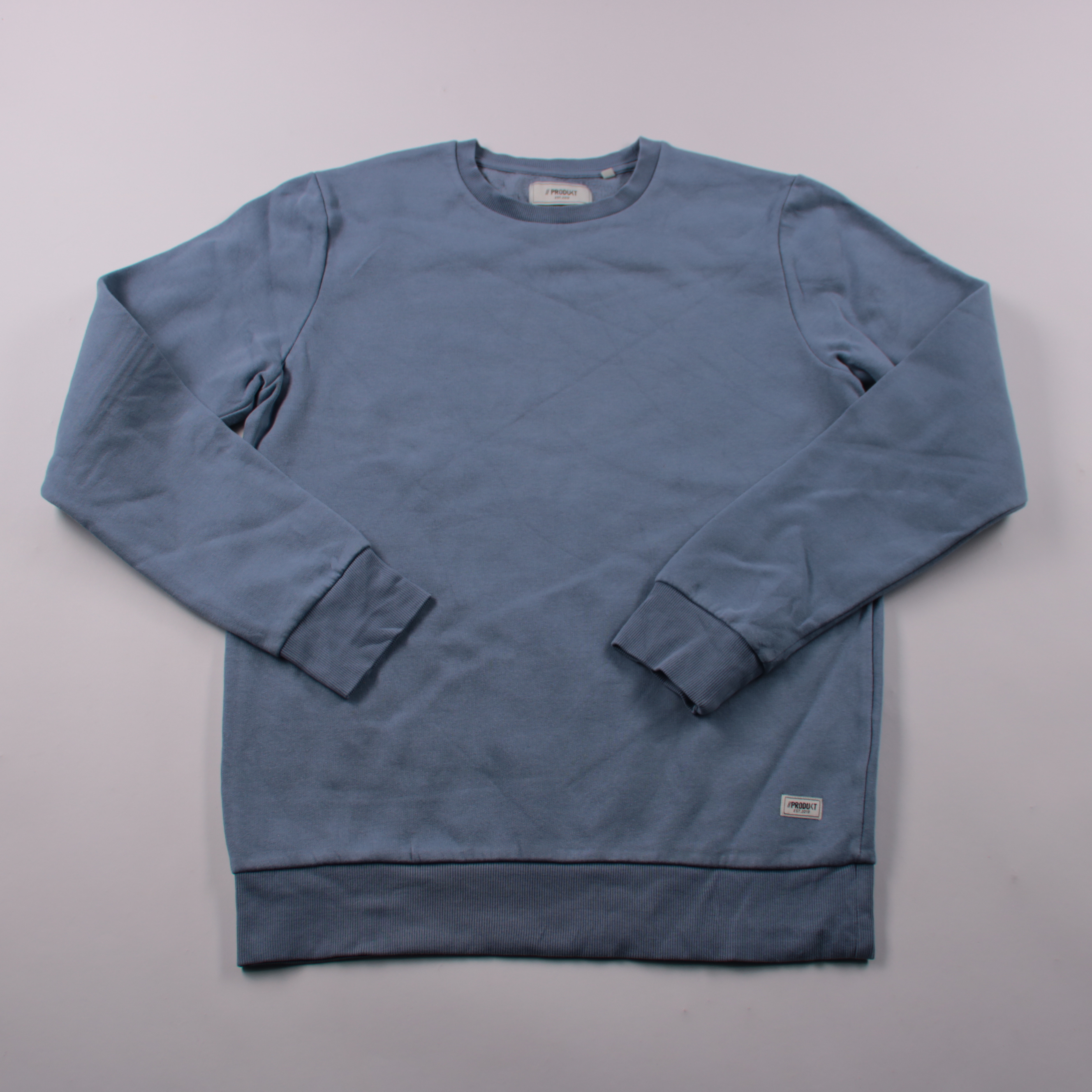 Мужской свитшот Produkt голубого цвета с мягкой флисовой изнанкой и классическим круглым вырезом. Подойдёт для повседневной носки и как средний слой в прохладную погоду. Эластичные манжеты и пояс держат форму и не продуваются.