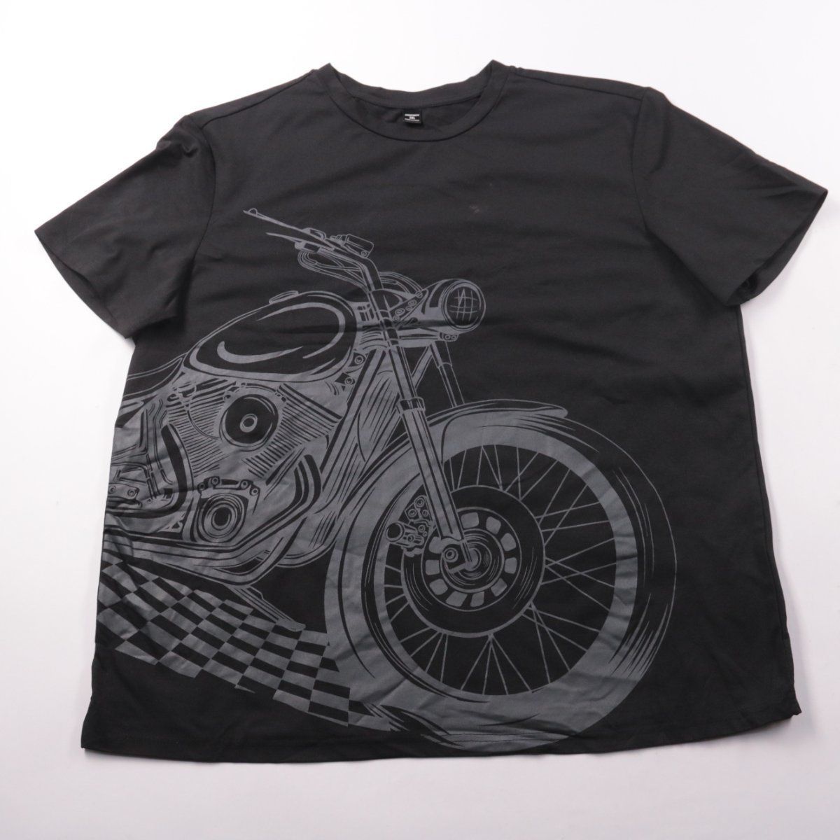 Мужская футболка Manfinity чёрного цвета с крупным графическим принтом мотоцикла. Подойдёт для повседневной носки и неформальных образов в тёплое время или как базовый слой. Материал из полиэстера быстро сохнет и меньше мнётся.