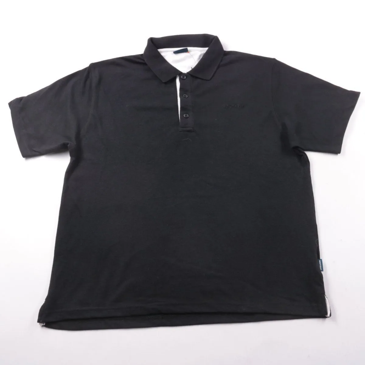 Мужское поло SOUTHBAY чёрного цвета с коротким рукавом и застёжкой на пуговицы. Подойдёт для повседневной носки и в качестве базовой вещи под джинсы или брюки. Состав с хлопком, можно стирать в машине.