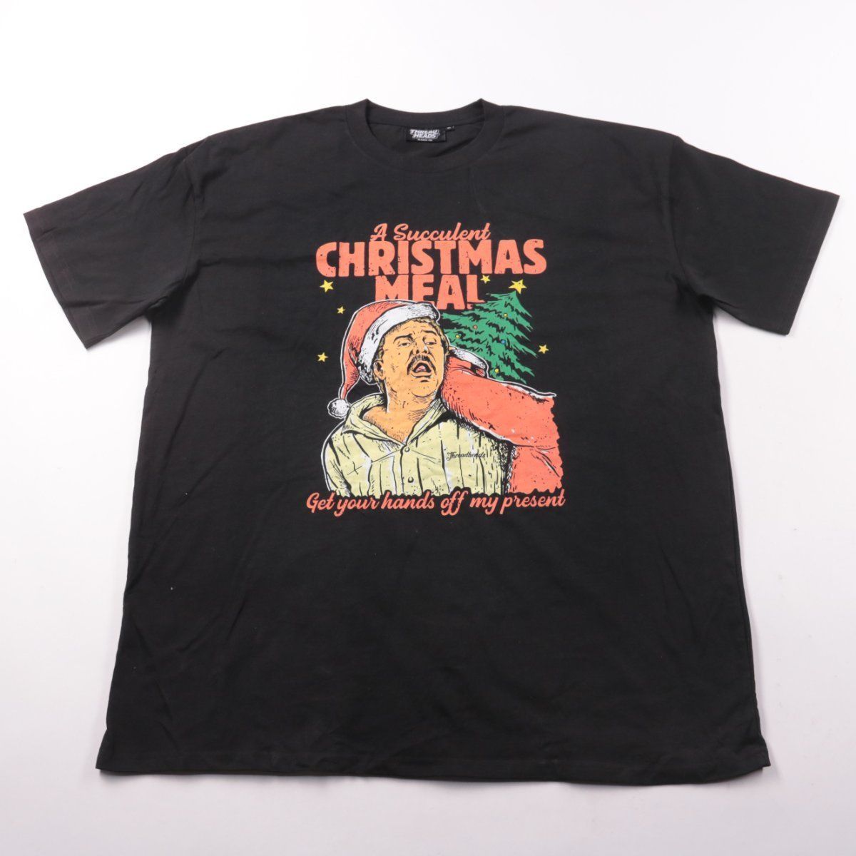 Мужская футболка ThreadHeads чёрного цвета с новогодним принтом и надписями. Подойдёт для повседневной носки и праздничных образов в зимний сезон. Хлопковая ткань приятна к телу и проста в уходе.