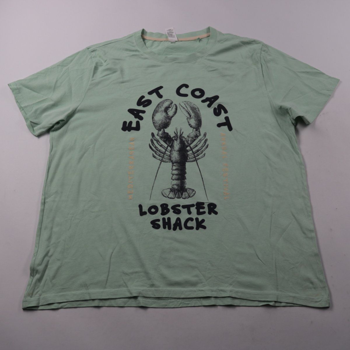 Мужская футболка Allgood мятного цвета с принтом «East Coast Lobster Shack». Подойдёт для повседневной носки и летних прогулок. Хлопковая ткань хорошо дышит и комфортна в жару.