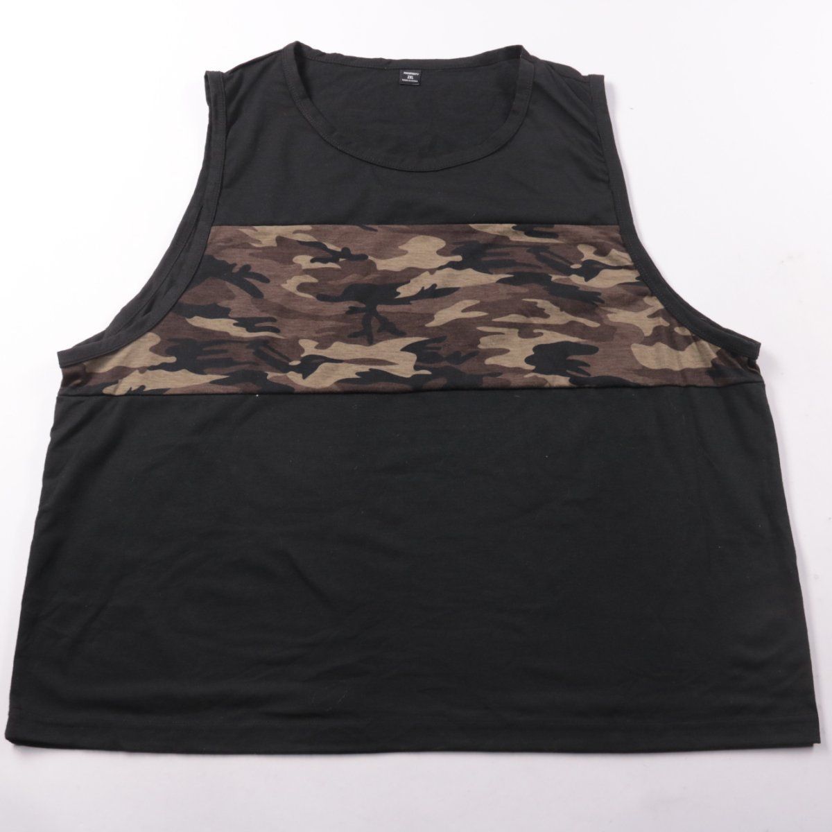 Мужская майка Manfinity с камуфляжной вставкой на груди и круглым вырезом. Подойдёт для лета, тренировок и повседневной носки. Лёгкая и удобная в сочетании с шортами и джинсами.