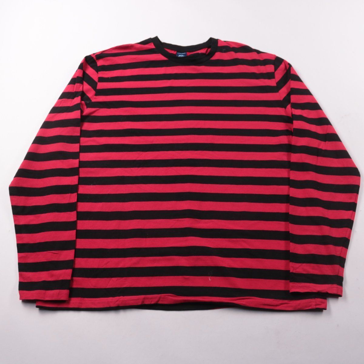 Мужская футболка LEDING с длинным рукавом в красно-чёрную полоску и круглым вырезом. Подойдёт для повседневной носки и как базовый слой в прохладную погоду. Ткань с добавлением эластана слегка тянется и комфортно садится по фигуре.