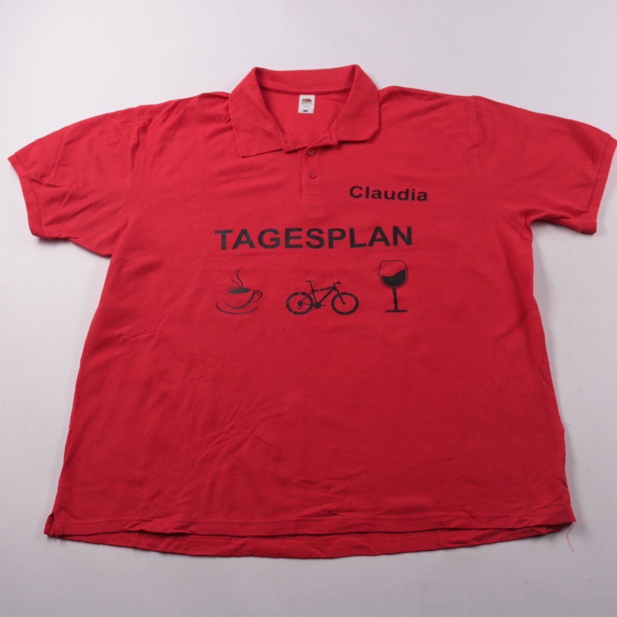 Мужское поло Fruit of the Loom Premium красного цвета с чёрным принтом и надписью на груди. Подойдёт для повседневной носки в тёплую погоду и как рабочая/клубная форма. Хлопковый пике хорошо дышит и легко стирается.
