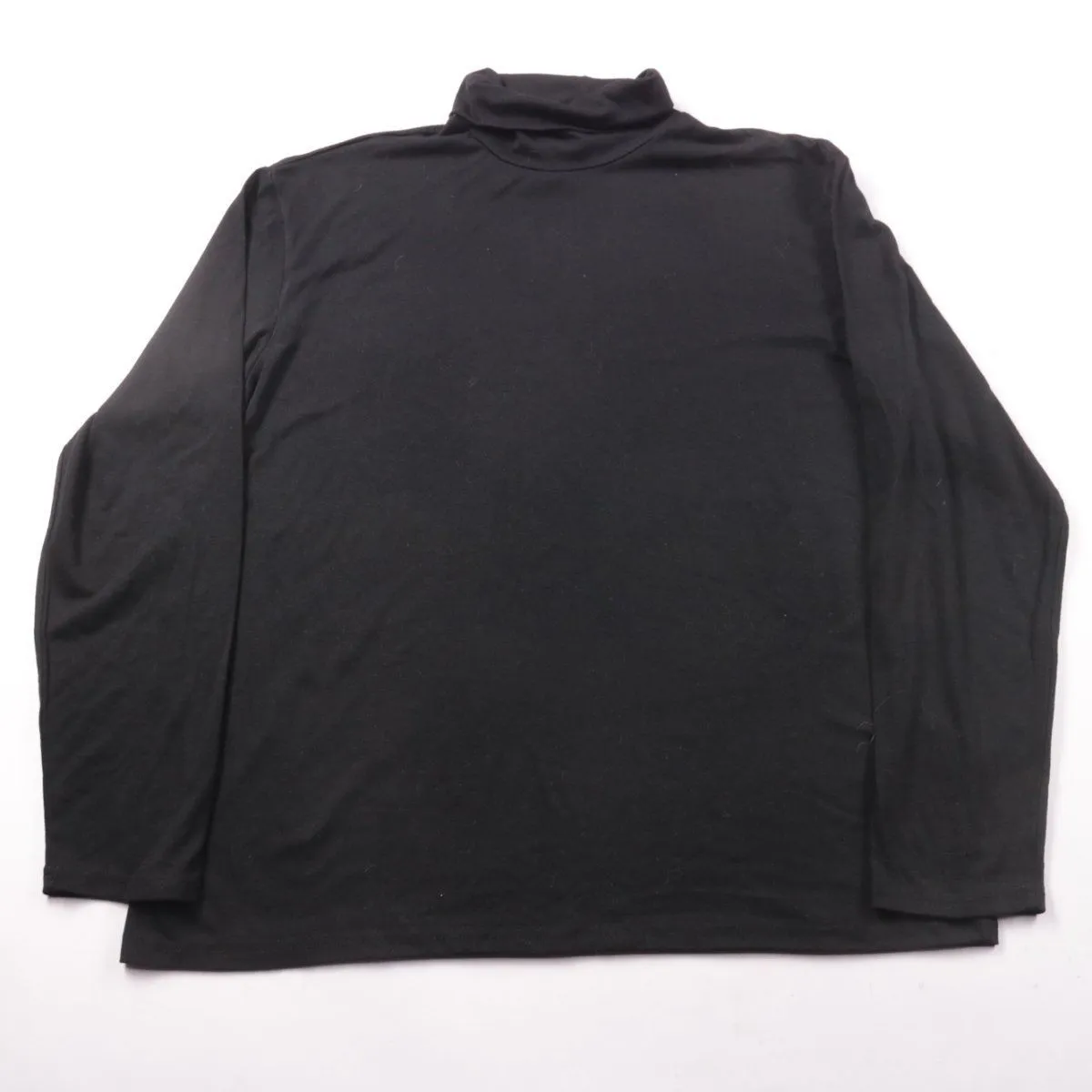 Мужская водолазка без бренда, однотонная чёрная с высоким воротником и длинным рукавом. Подойдёт для повседневной носки и как базовый слой под куртку или пиджак в прохладную погоду. Ткань с хлопком в составе комфортна и проста в уходе.