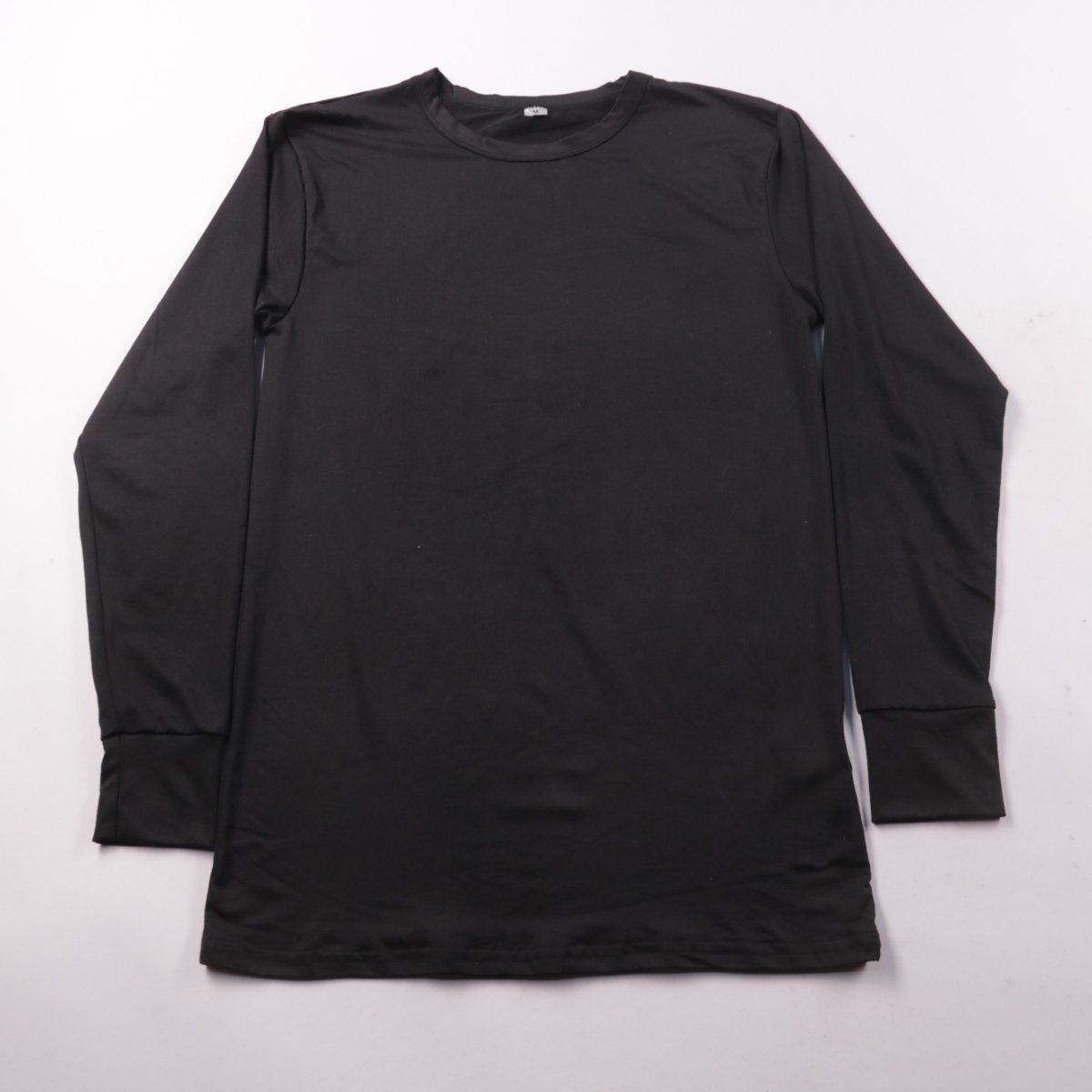 Мужская чёрная футболка с длинным рукавом из эластичной синтетической ткани. Подойдёт как базовый слой на каждый день, для спорта или под куртку в прохладную погоду. Материал хорошо тянется и быстро сохнет.
