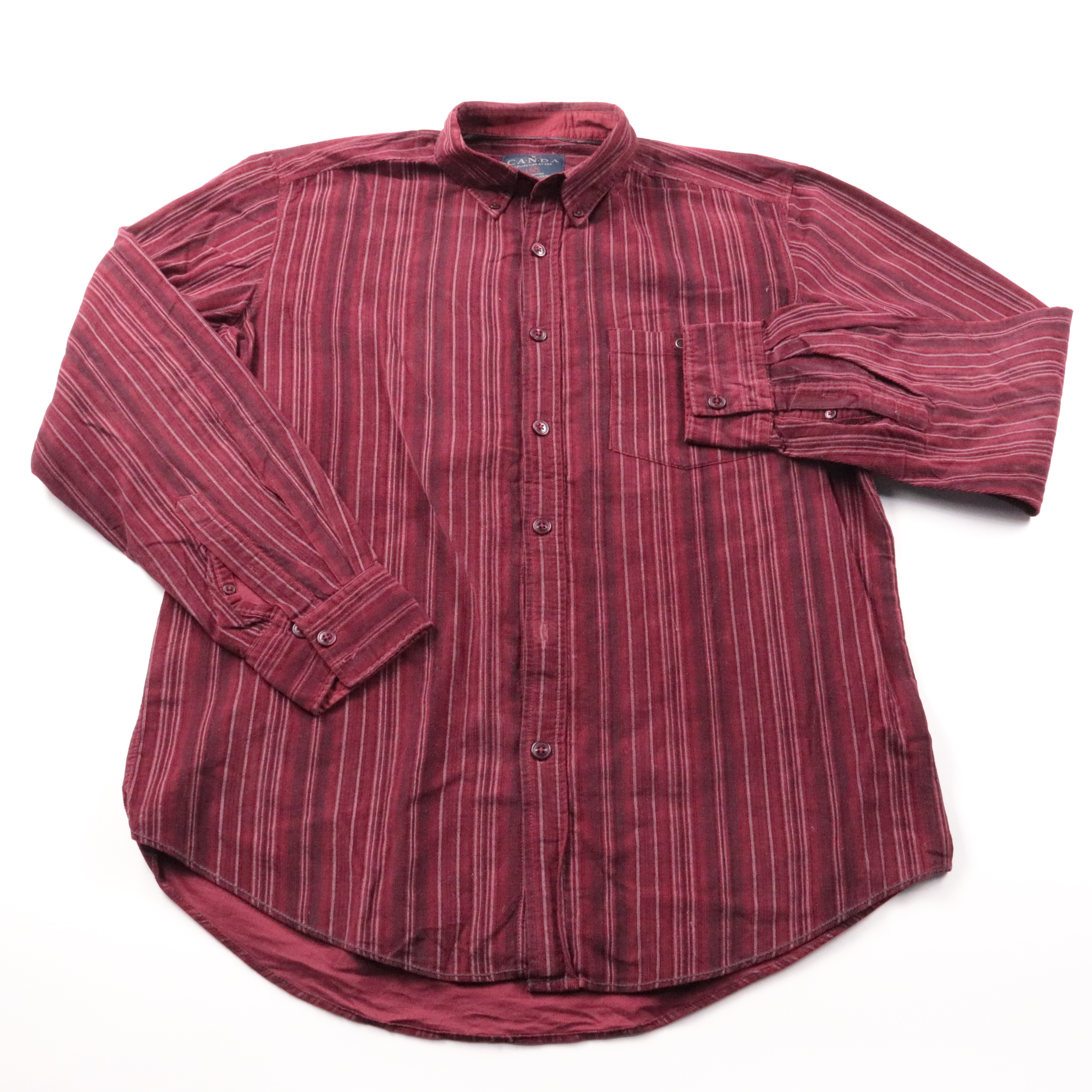Мужская рубашка Canda в бордовом цвете с вертикальной полоской и воротником на пуговицах. Подойдёт для повседневной носки и офиса в стиле casual, хорошо смотрится с джинсами или чиносами. Натуральный хлопок приятен к телу и удобно носится в течение дня.