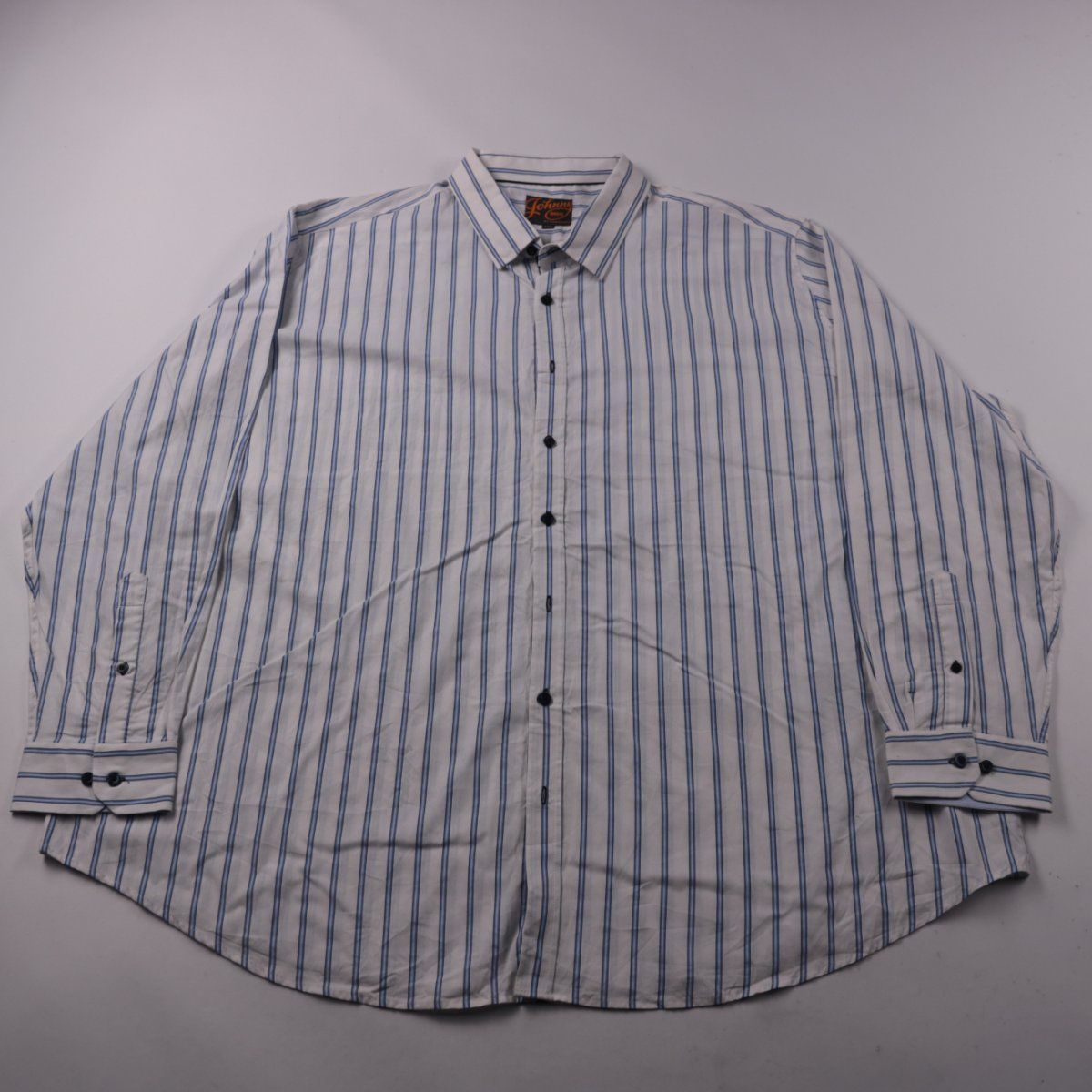 Мужская рубашка Johnny Bigg в бело-синюю полоску, на пуговицах, с длинным рукавом. Подойдёт для офиса и повседневных образов в прохладную погоду или под пиджак. Хлопковая ткань хорошо дышит и комфортна в носке.