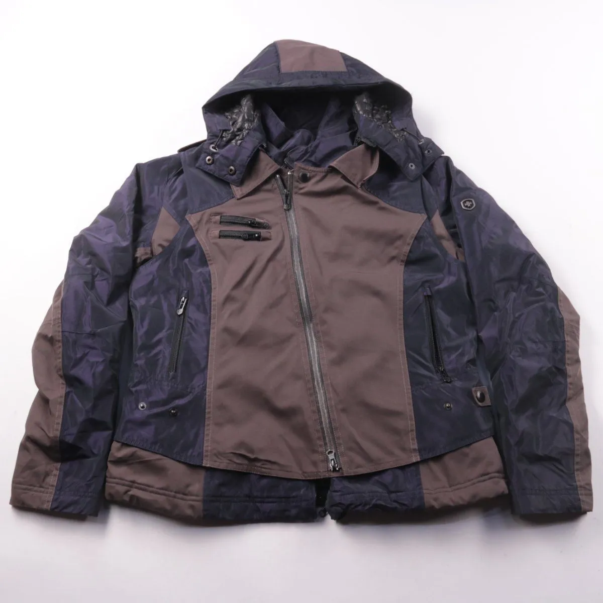 Зимняя мужская куртка Wellensteyn в двухцветном исполнении (синий/коричневый) с капюшоном и застёжкой на молнию. Подойдёт для повседневной носки в холодную погоду и прогулок по городу. Практичный плюс — несколько карманов на молниях для мелочей.