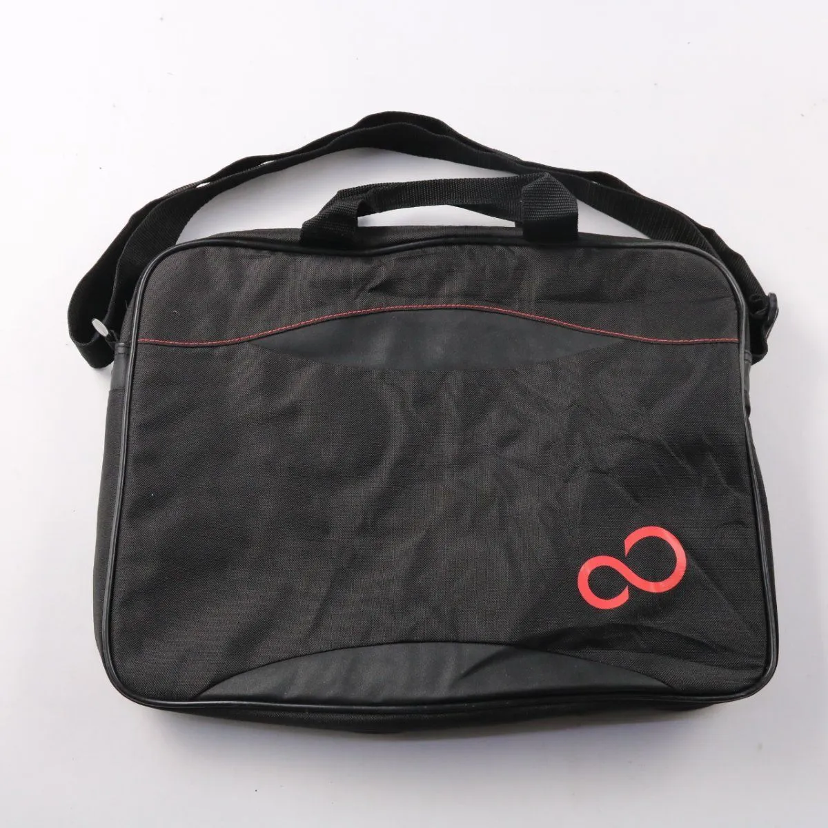 Чёрная сумка с ручками и длинным ремнём через плечо, застёгивается на молнию. Подойдёт для переноски документов и ноутбука в повседневных поездках. Практична тем, что имеет широкий регулируемый ремень и вместительное основное отделение.