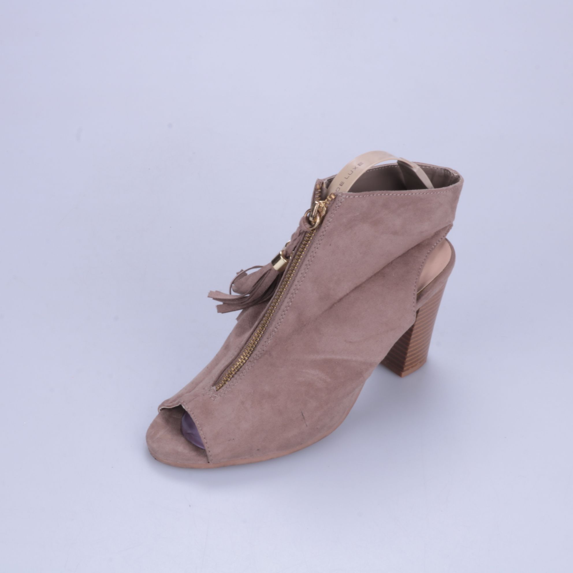 Босоножки Qupid из мягкой искусственной замши с открытым носком и молнией спереди, дополнены кисточками. Подойдут для летних образов с платьями, юбками и джинсами. Устойчивый каблук делает их удобными для прогулок и мероприятий.