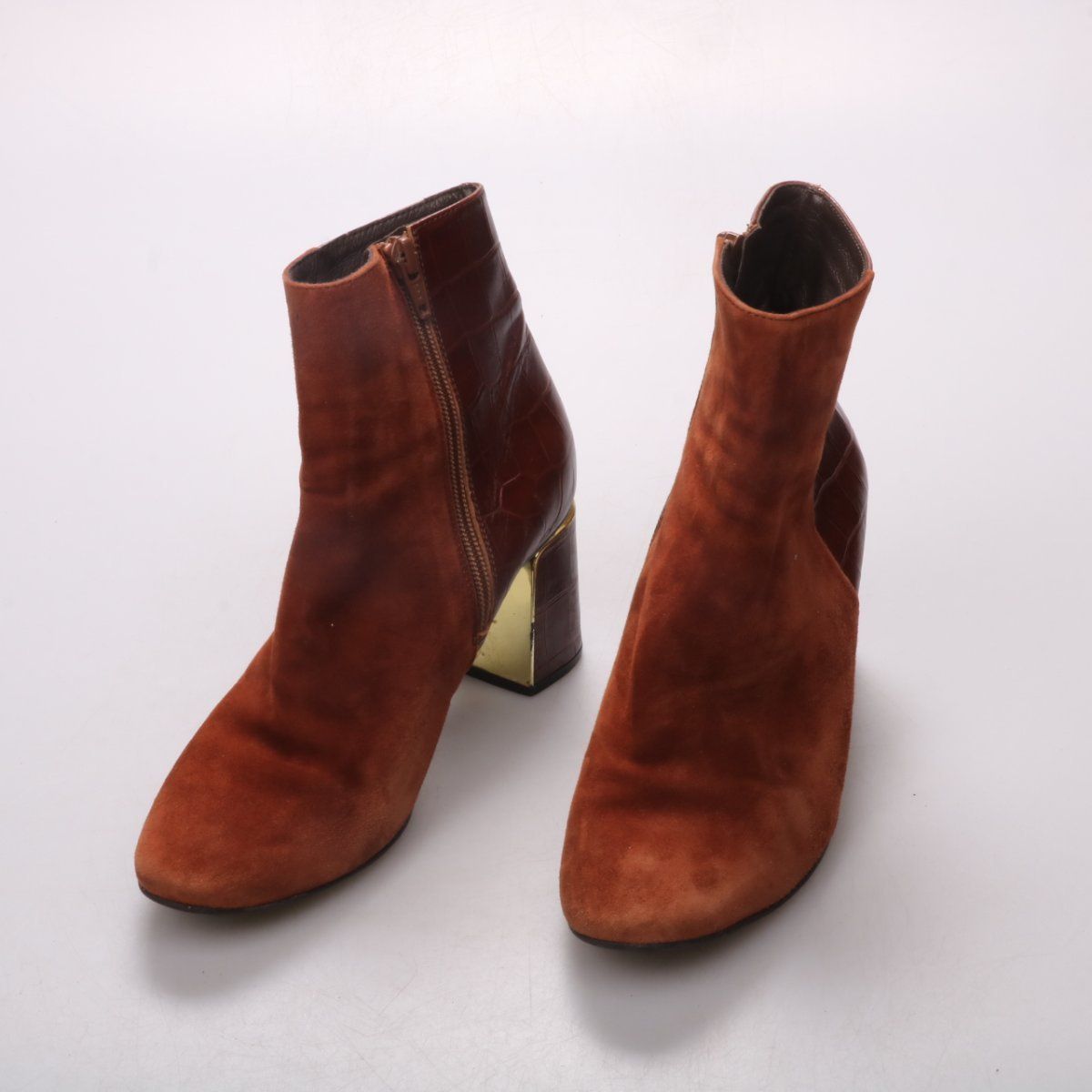 Женские ботильоны JHAY из натуральной замши с вставками под крокодиловую кожу и устойчивым каблуком. Подойдут для повседневных образов в межсезонье и на выход благодаря акцентной отделке. Удобная боковая молния помогает быстро надевать и снимать обувь.