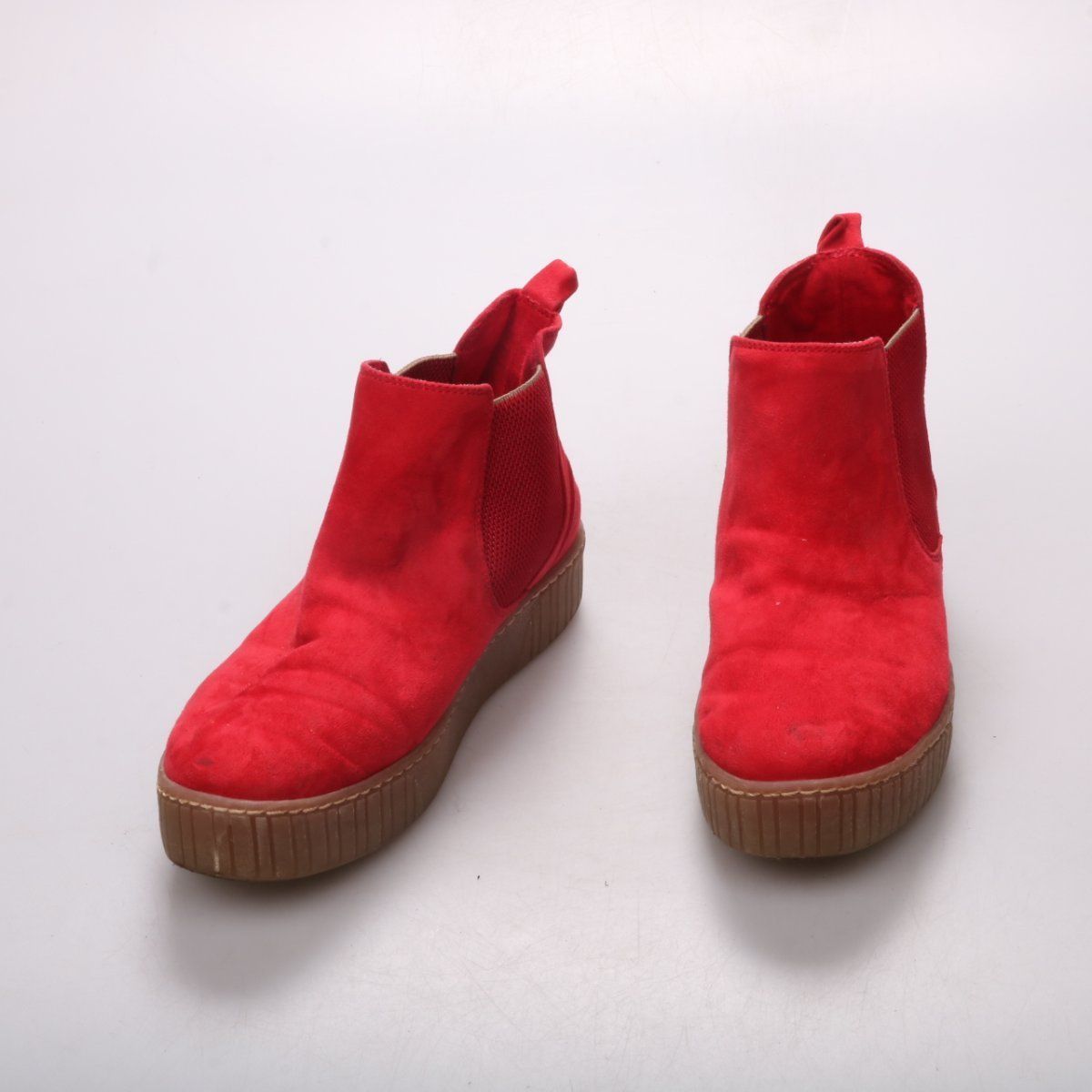 Ботильоны Marco Tozzi ярко‑красного цвета, в стиле Chelsea, с эластичными вставками по бокам и петлей на пятке. Подойдут для повседневной носки в городе весной и осенью, хорошо сочетаются с джинсами и платьями. Рифлёная резиновая подошва даёт устойчивость и неплохое сцепление с поверхностью.