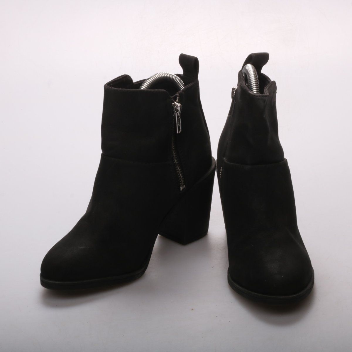 Женские ботильоны Divided (H&M) чёрного цвета на устойчивом каблуке с боковой молнией. Подойдут для повседневных образов в прохладную погоду и на выход. Удобно быстро надевать и снимать благодаря молнии.