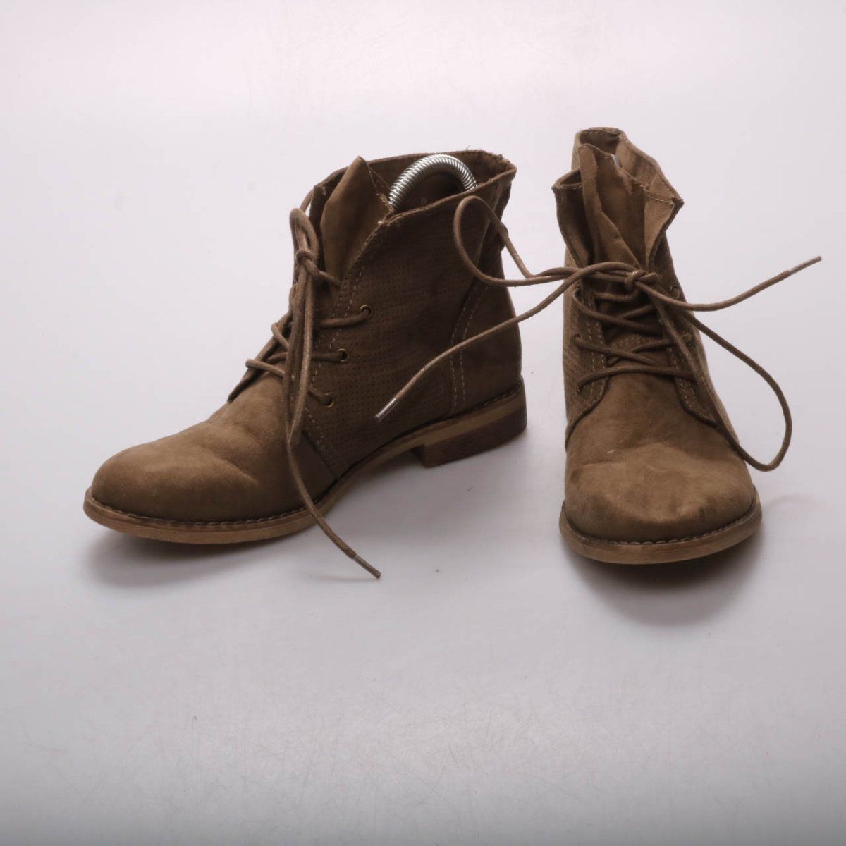Женские ботильоны Graceland коричневого цвета на шнуровке, с перфорацией по бокам и невысоким каблуком. Подойдут для повседневной носки в межсезонье с джинсами или платьями. Практичная подошва с рельефом помогает увереннее держаться на разных покрытиях.