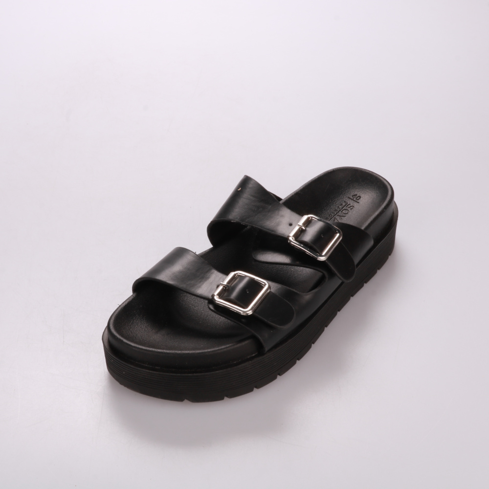 Чёрные сандалии Soya с двумя широкими ремешками и металлическими пряжками. Подойдут для повседневных летних образов и прогулок, легко сочетаются с шортами, платьями и джинсами. Рифлёная подошва даёт устойчивость и меньше скользит на гладкой поверхности.