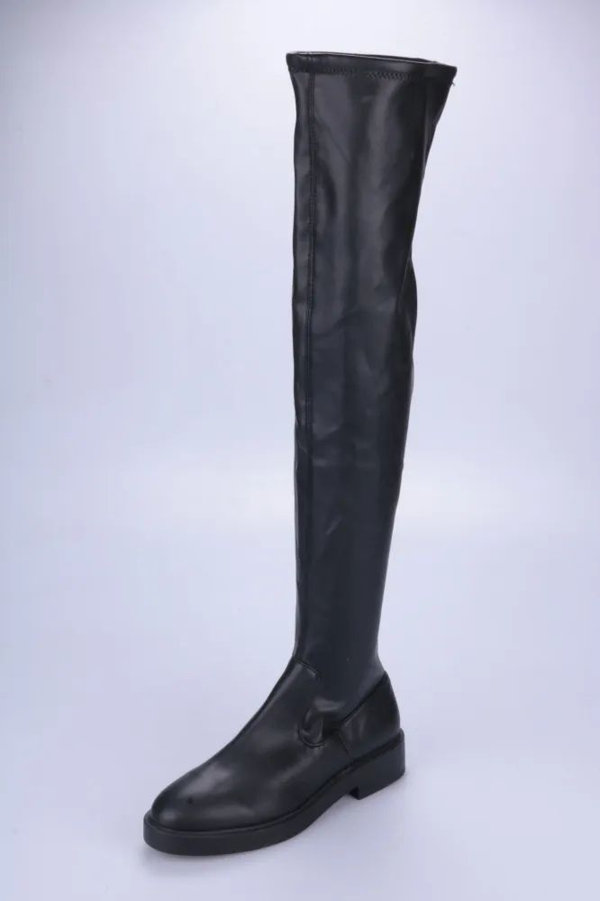 Женские сапоги-ботфорты на молнии, высокий голенище и лаконичный дизайн. Подойдут для повседневных образов в прохладную погоду с платьем, юбкой или узкими джинсами. Устойчивая подошва и низкий каблук делают их удобными для длительной носки.