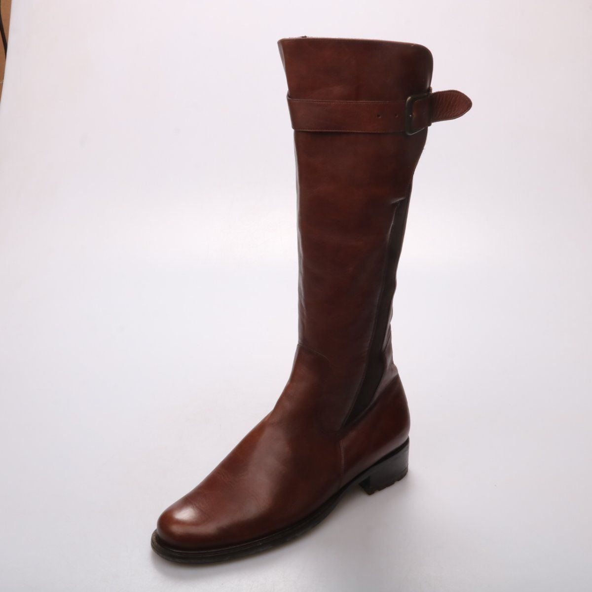 Женские сапоги Semler из натуральной кожи коричневого цвета, с застёжкой-молнией и декоративным ремешком сверху. Подойдут для повседневной носки в городе в демисезон, хорошо сочетаются с пальто и джинсами. Устойчивая подошва и невысокий каблук делают пару удобной для длительной ходьбы.