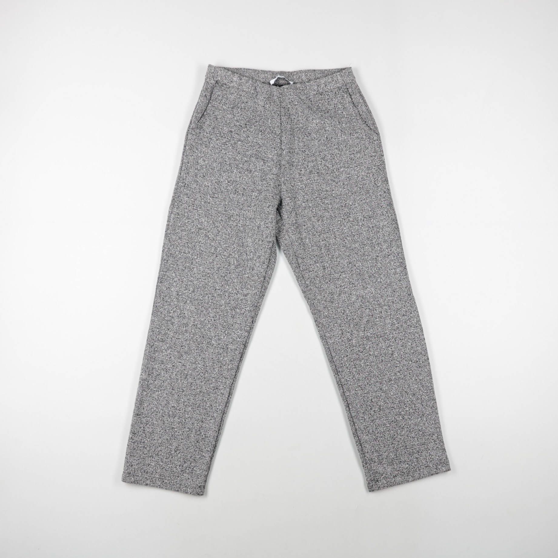 Женские брюки прямого кроя из серой меланжевой ткани, без заметного декора. Подойдут для офиса и повседневных образов с рубашкой или свитером. Практичный плюс — нейтральный цвет легко сочетается с базовой обувью и верхней одеждой.