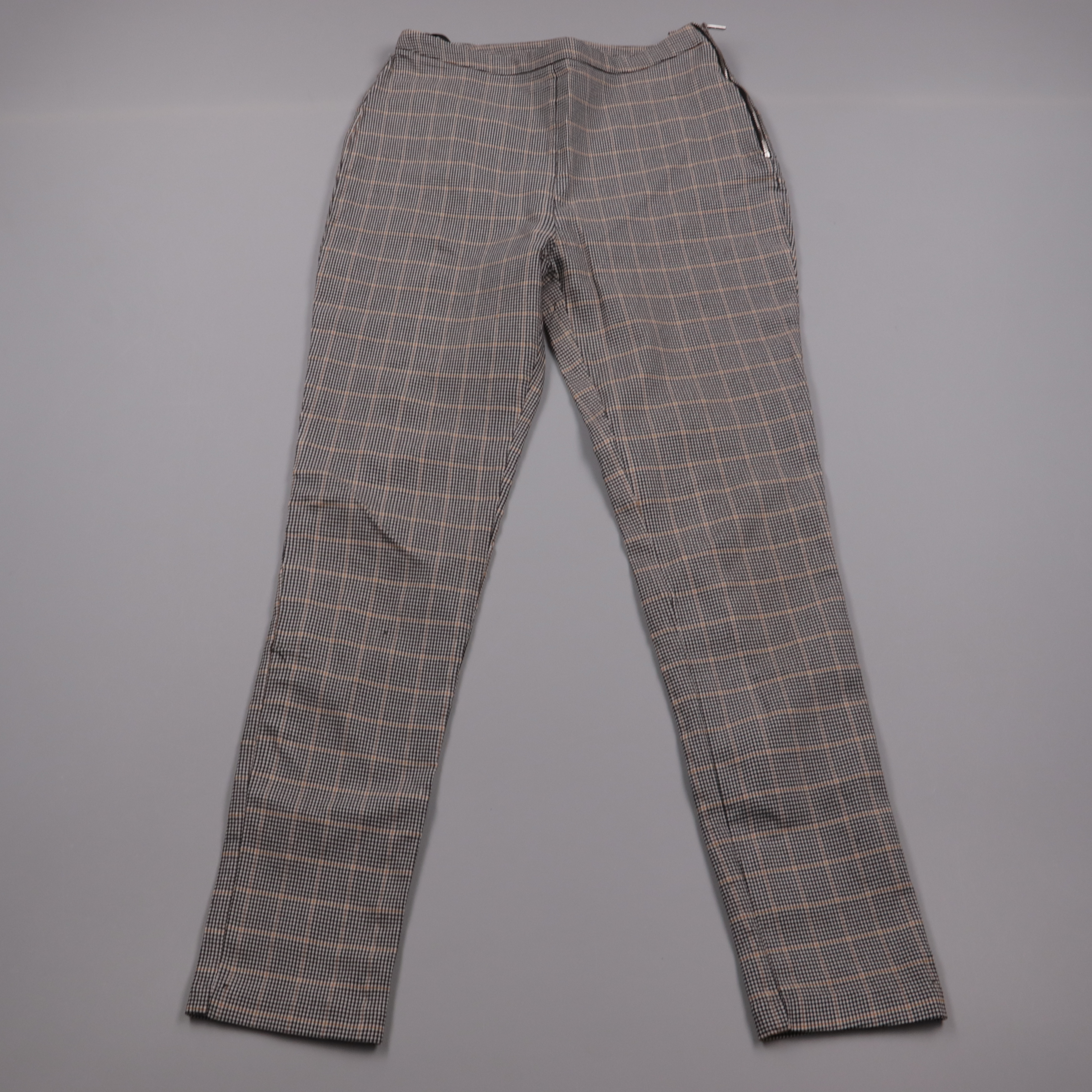Женские брюки New Look в мелкую клетку, зауженный прямой крой со молнией сбоку. Подойдут для офиса и повседневных образов с рубашкой, водолазкой или жакетом. Практичный плюс — ткань со стрейчем, комфортно сидит и не сковывает движения.