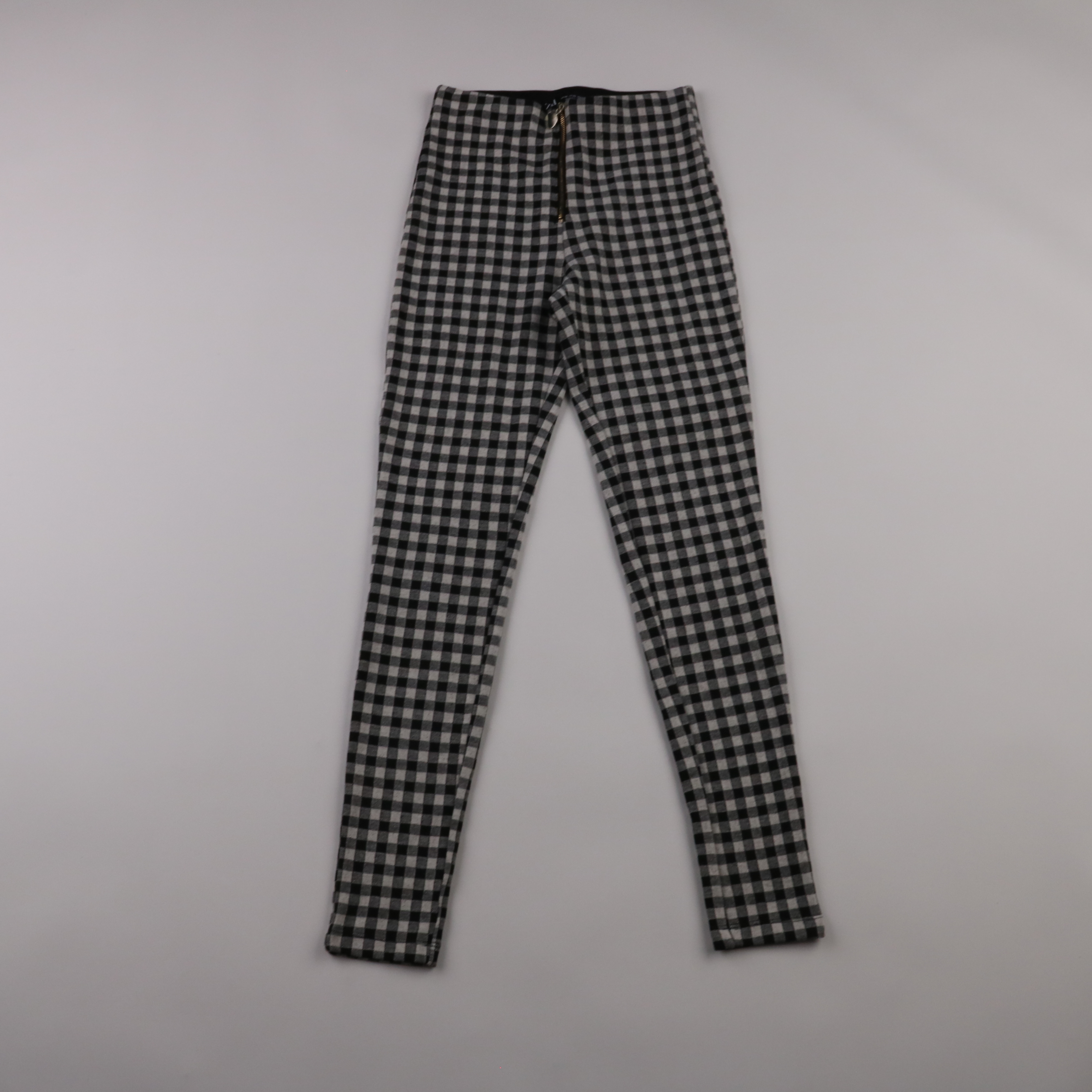 Женские зауженные брюки Zara в черно-белую клетку (гингем) с высокой посадкой и молнией спереди. Подойдут для офиса и повседневных образов с однотонными рубашками, свитерами и жакетами. Плотная ткань хорошо держит форму и не мнётся так быстро.