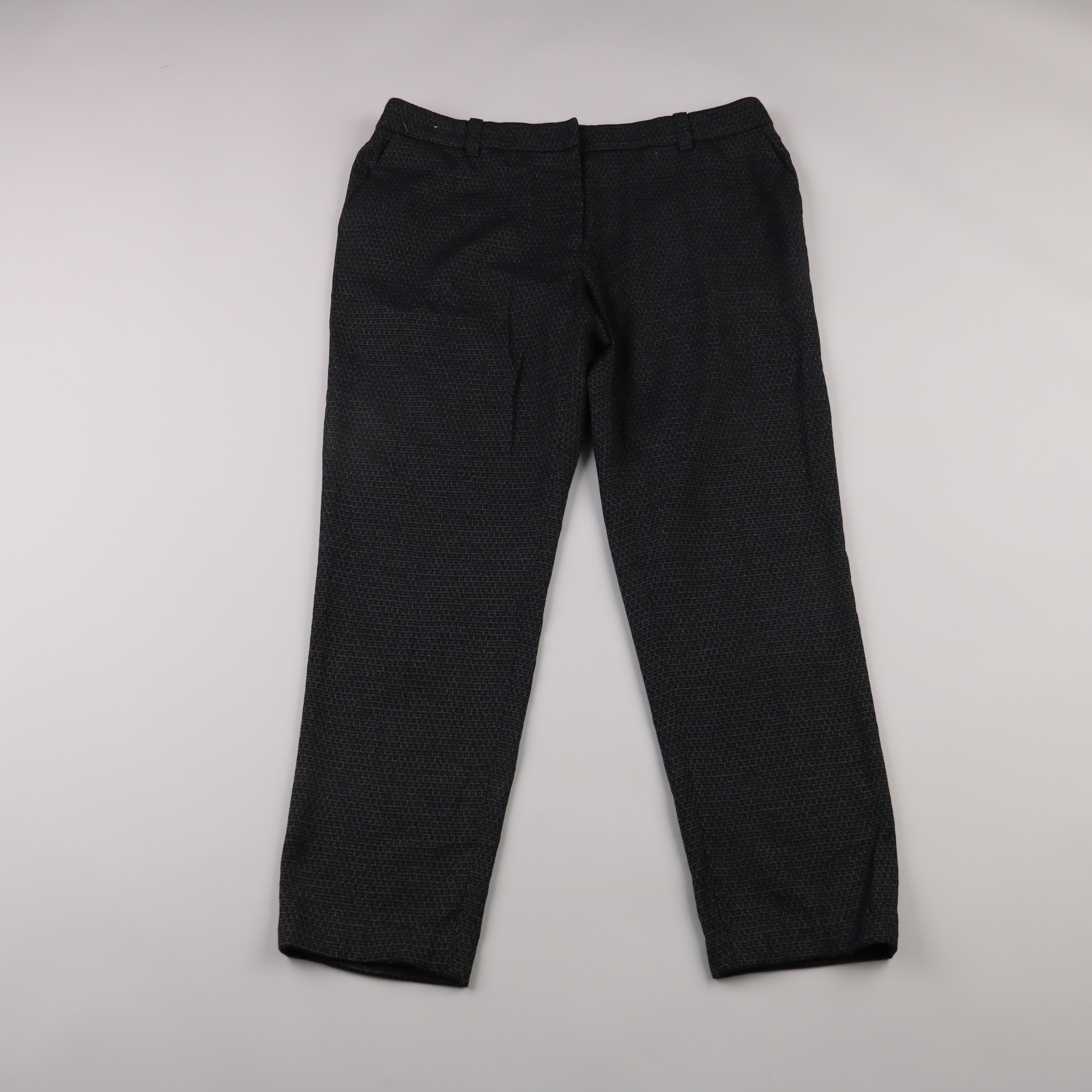 Брюки Next Tailoring в тёмно-сером меланжевом цвете, прямого кроя и с классической посадкой. Подойдут для офиса и повседневных образов, хорошо смотрятся с рубашкой или джемпером. Ткань с добавлением эластана немного тянется и комфортна в носке.
