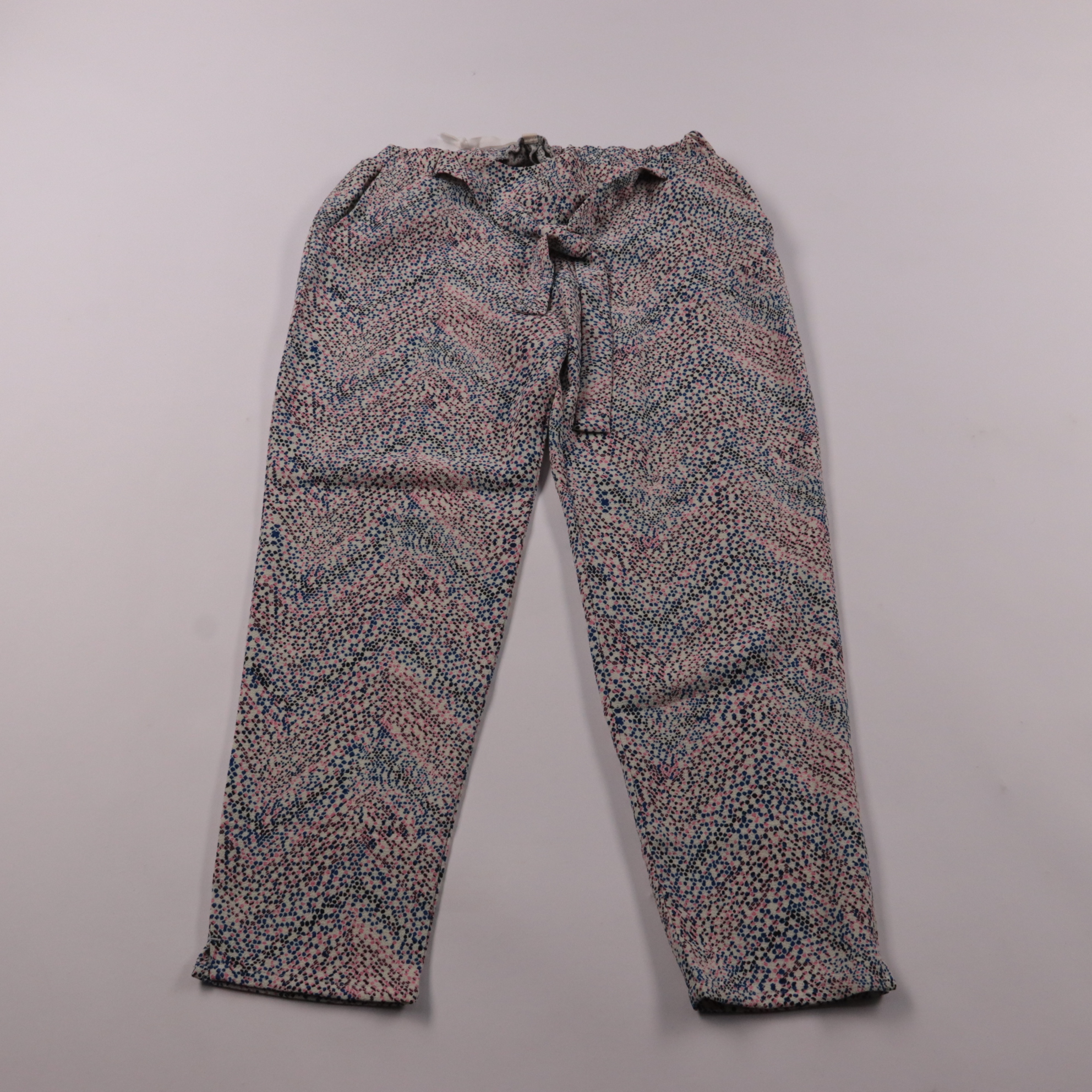 Женские брюки CKS с мелким разноцветным принтом и поясом на талии. Лёгкая ткань подойдёт для лета и тёплой весны, удобно сочетать с однотонными топами и рубашками. Практичный плюс — эластан в составе даёт комфортную посадку и свободу движений.