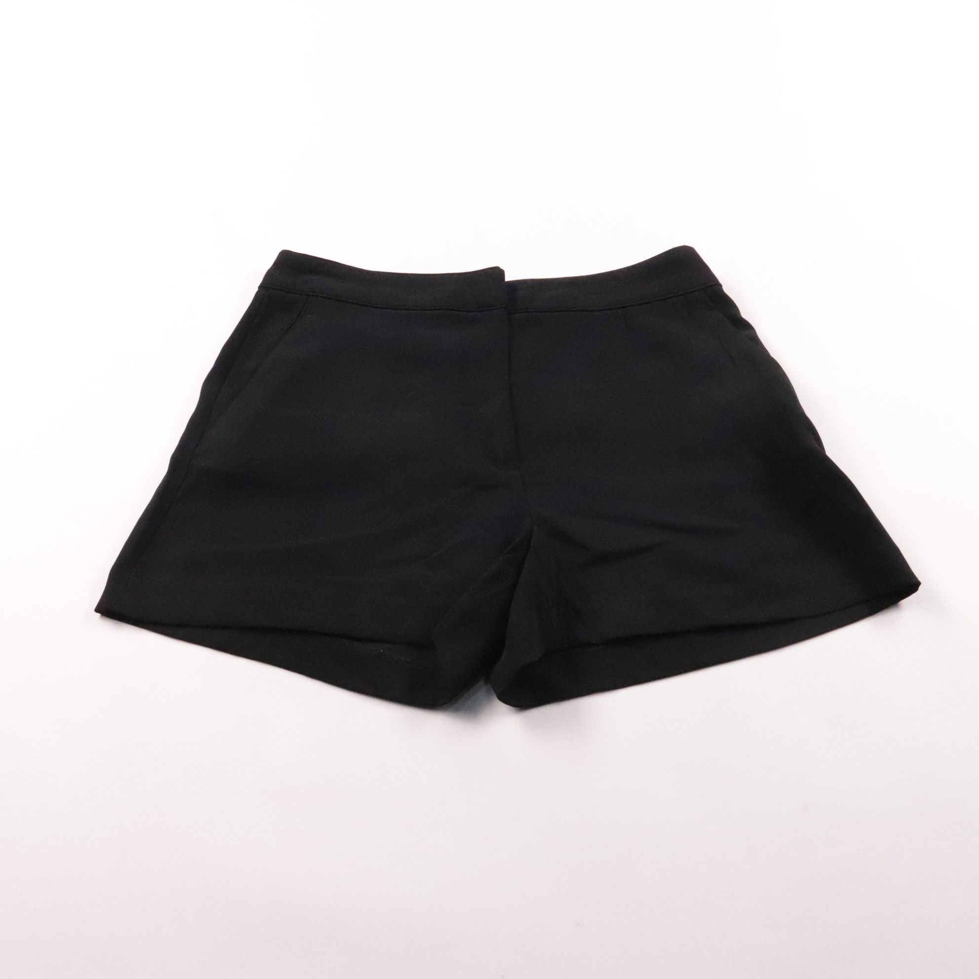Чёрные шорты H&M из плотной ткани с аккуратной посадкой и отворотами по низу. Подойдут для лета и тёплой весны, легко сочетаются с футболками, рубашками и жакетами. Практичный плюс — базовый цвет и удобные карманы.